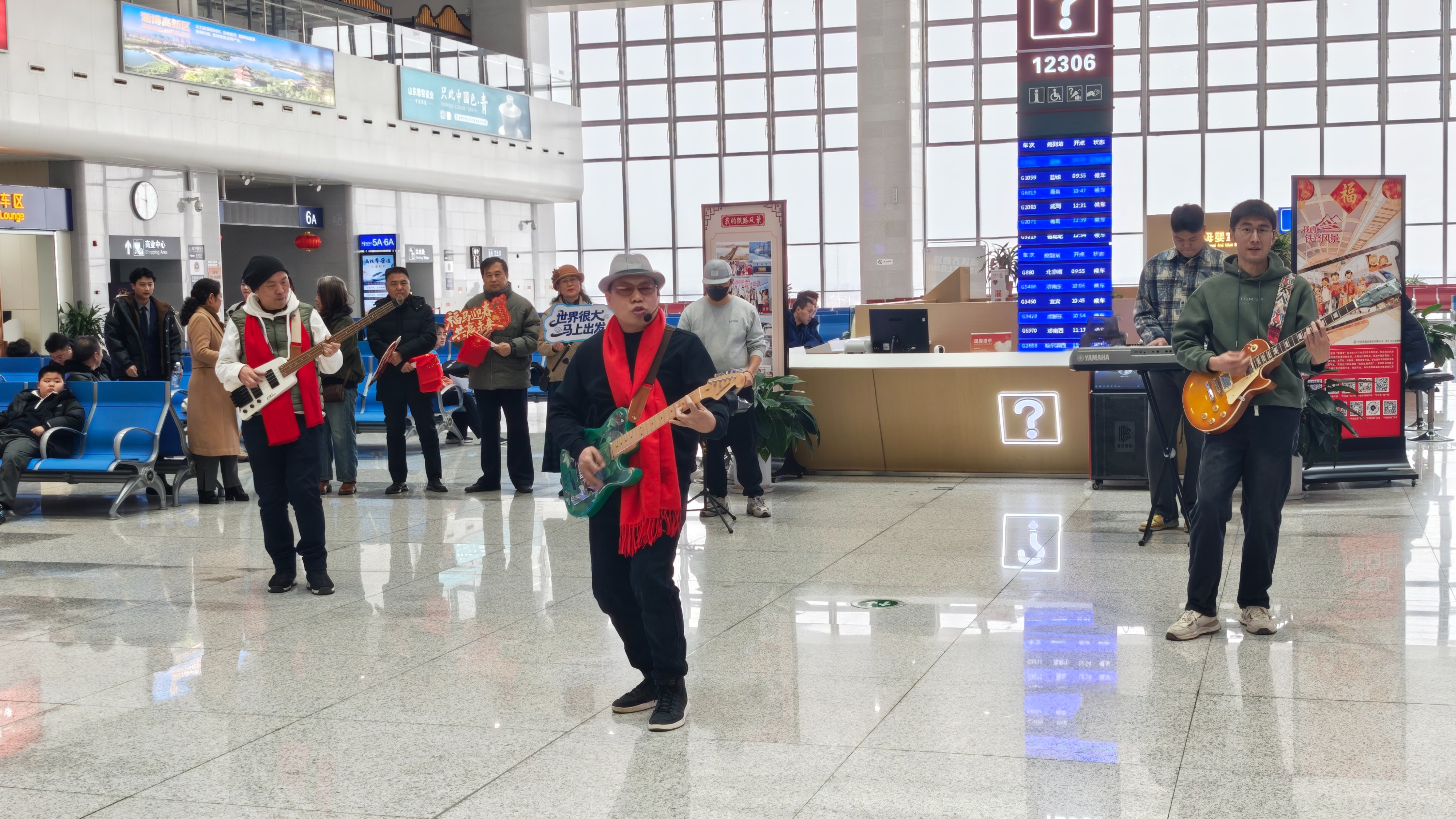 “快闪活动”成为大集上一道亮丽的风景线。精彩的艺术表演、富有感染力的节庆歌舞等形式多样的快闪演出,为繁忙的车站空间注入了惊喜与欢乐,吸引众多旅客围观拍照,在轻松愉悦的氛围中感受群众文化的生机与活力。