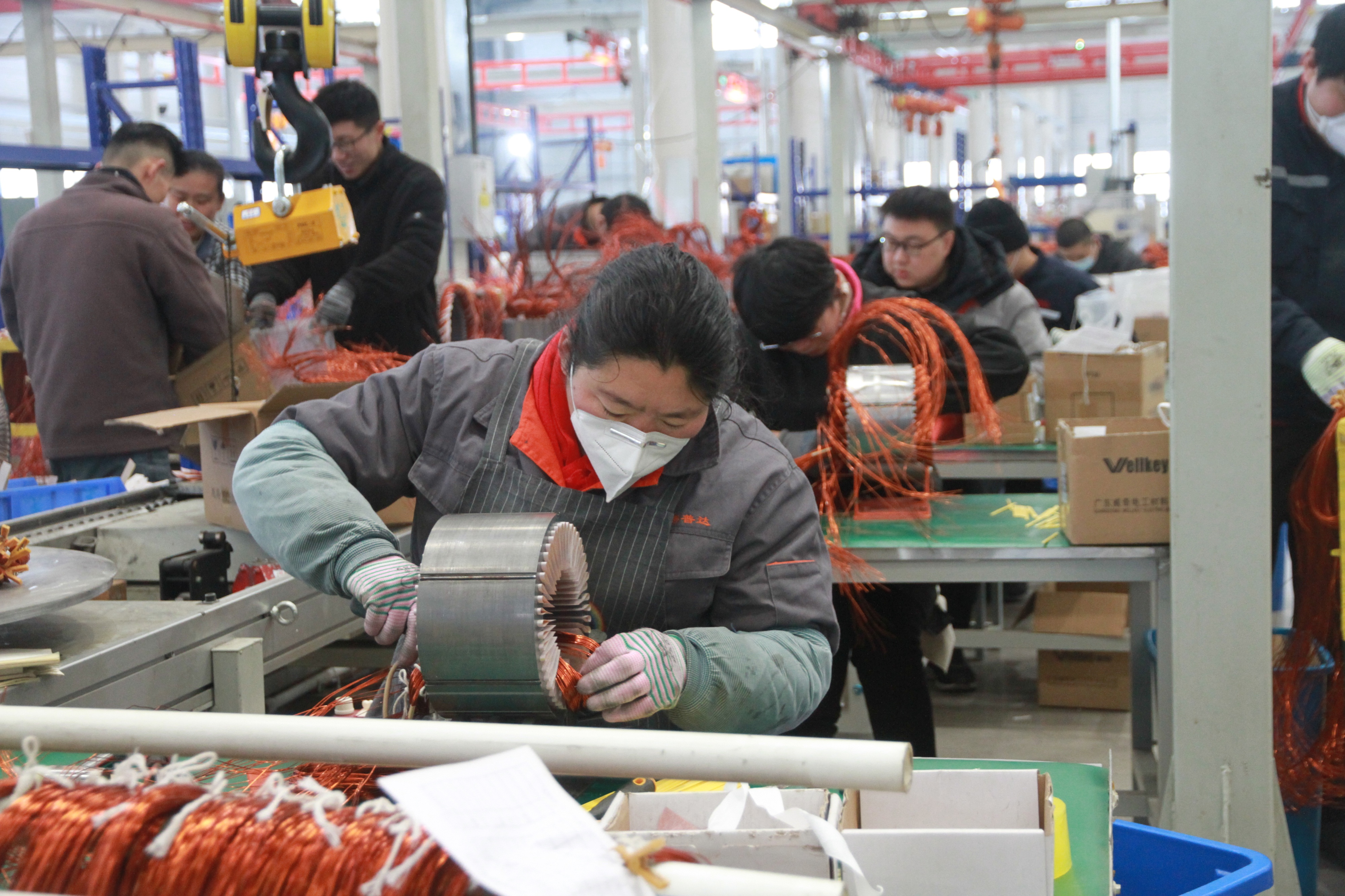 位于淄博先创区的山东得普达电机股份有限公司的新厂区内,喷涂车间、装配车间等各条生产线高速运转,全力赶制订单,叉车、推车运送着机器、零部件在各个车间来回穿梭,飞溅的焊花、机器的轰鸣声和工人忙碌的身影勾勒出了企业争分夺秒抓生产的生动场景。