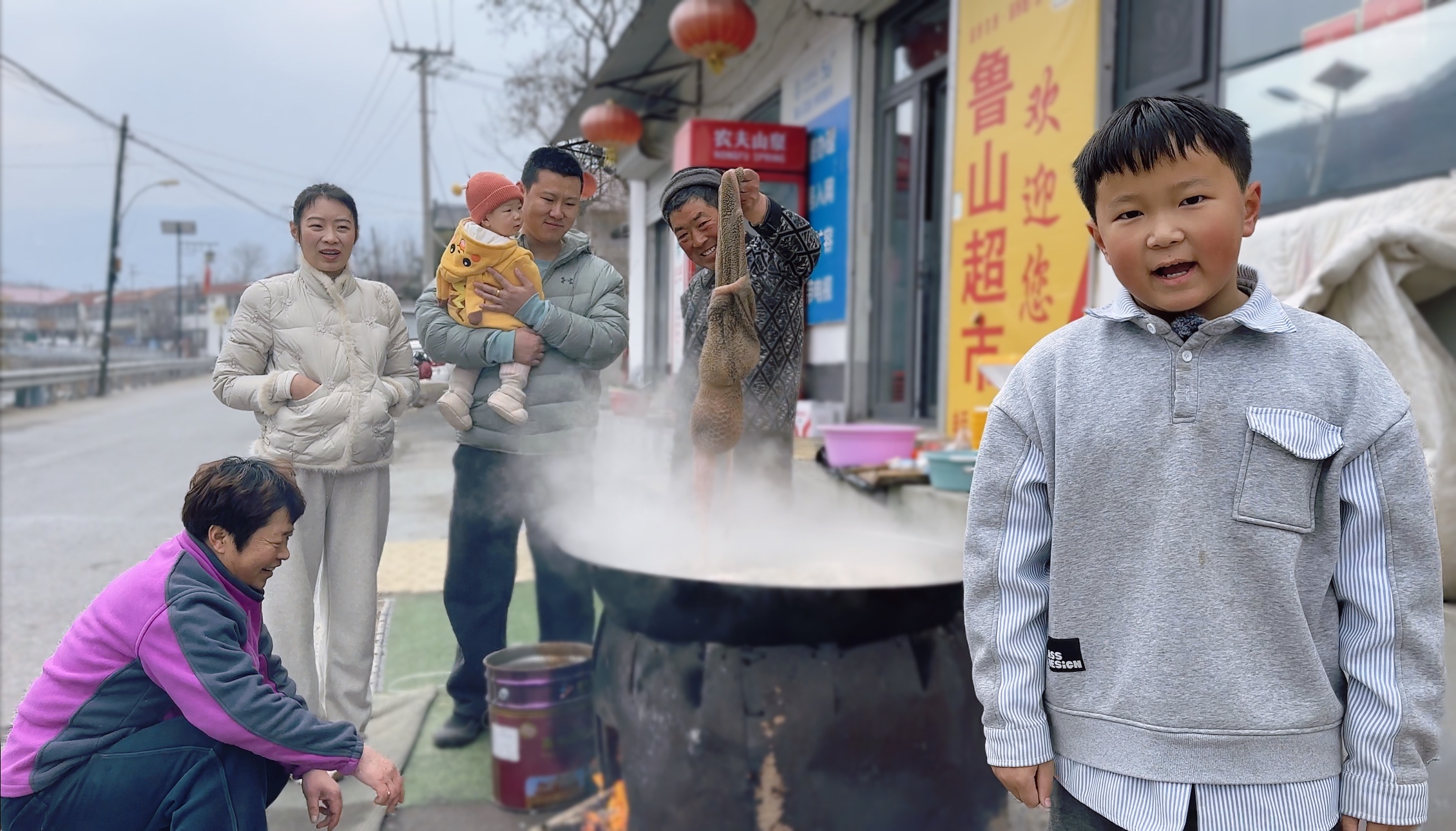 而在下小峰村,小年这天不止有家家户户的忙碌,更有一道独特而温暖的风景。村中大街小巷,随处可见三两组队的村民,他们围聚在临时搭建的灶台旁,共同烹煮整羊。炭火噼啪作响,巨大的铁锅里的羊汤翻滚沸腾,浓郁的香气随热气蒸腾弥漫,笼罩了整个村落,将年味烘托得愈发浓烈。