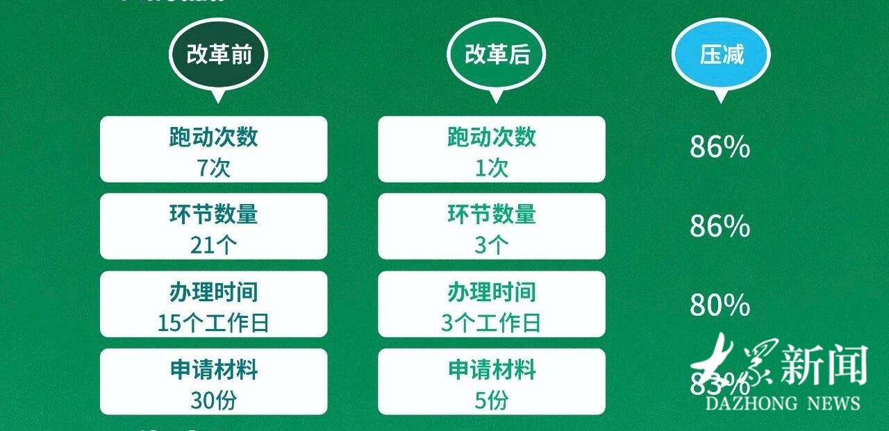 数字是最直观的“成绩单”。淄博市把水电气网报装这些与企业群众生产、生活息息相关的8个事项整合为“一件事”,“一次办好”。过去,要想办好这些事,环节数量21个,办理时间15个工作日,申请材料30份。改革后,跑动次数1次,压减86%;环节数量3个,压减86%;办理时间3个工作日,压减80%,申请材料5份,压减83%。