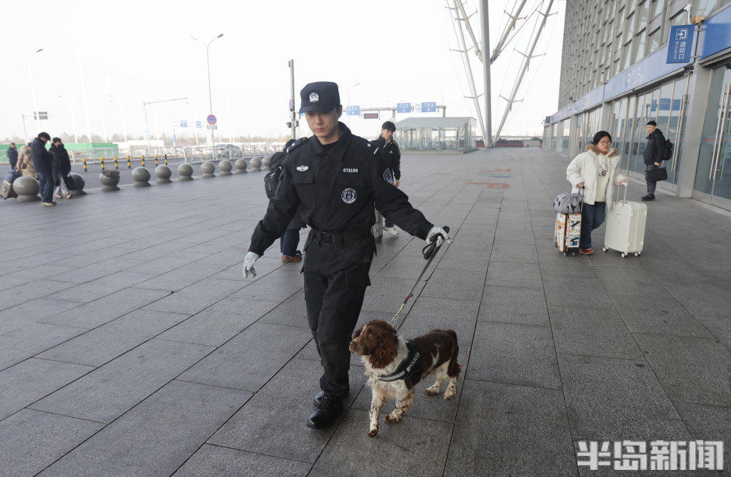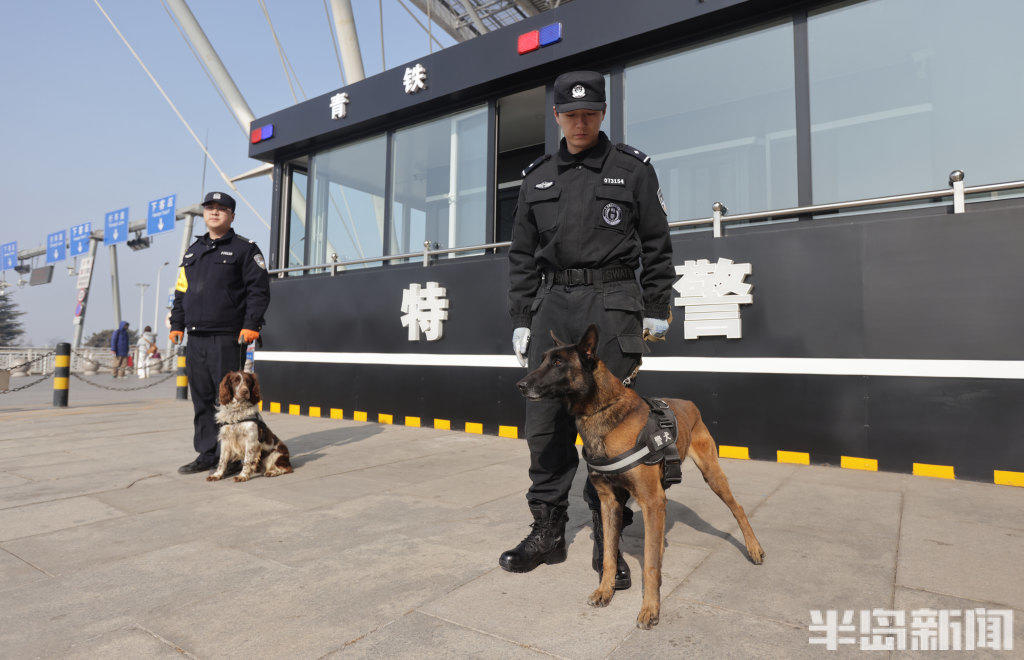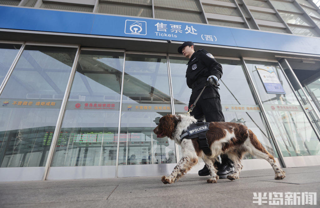 春运安保期间,民警携治安犬、搜爆犬在青岛各火车站重点区域武装巡逻,对站内阴暗角落、安检区域等关键部位开展细致安全排查,全力配合各警种做好应急处突与安全防护工作,用坚守与责任筑牢春运安全防线,守护万千旅客平安出行。