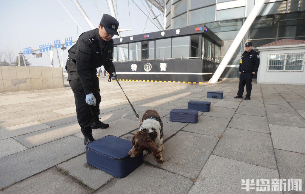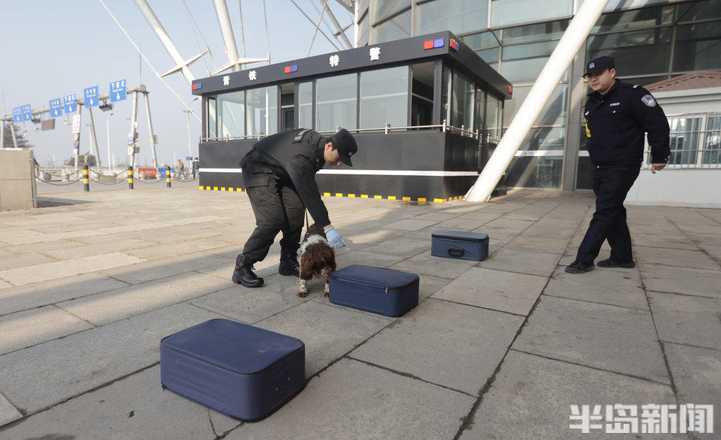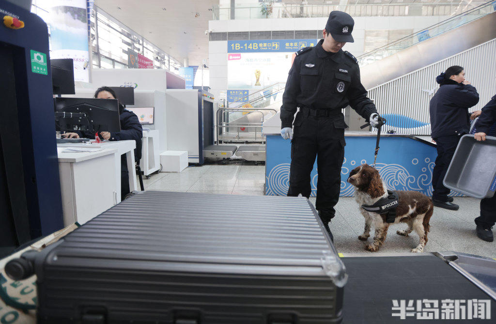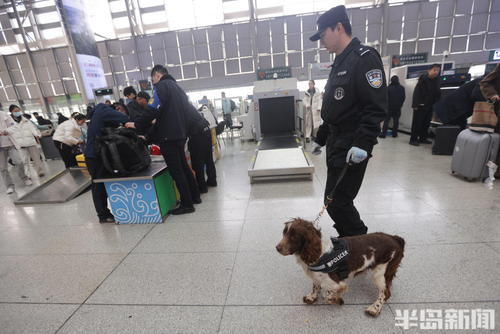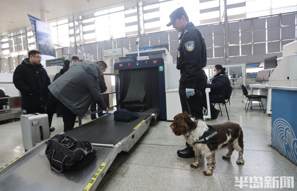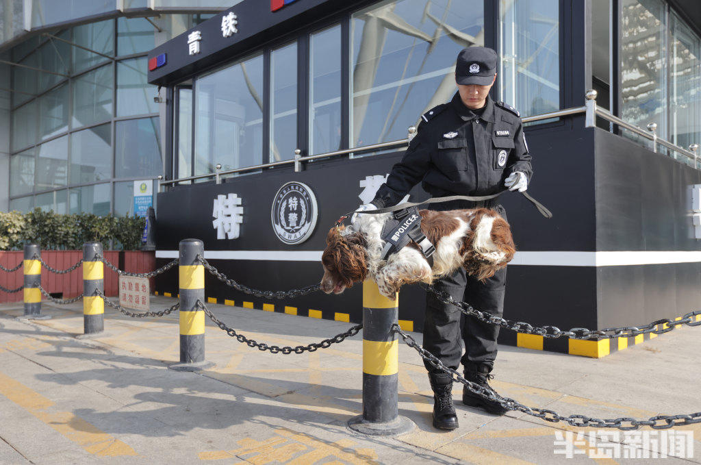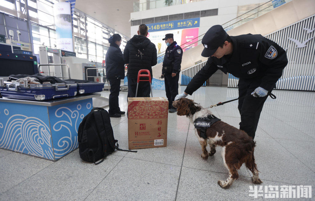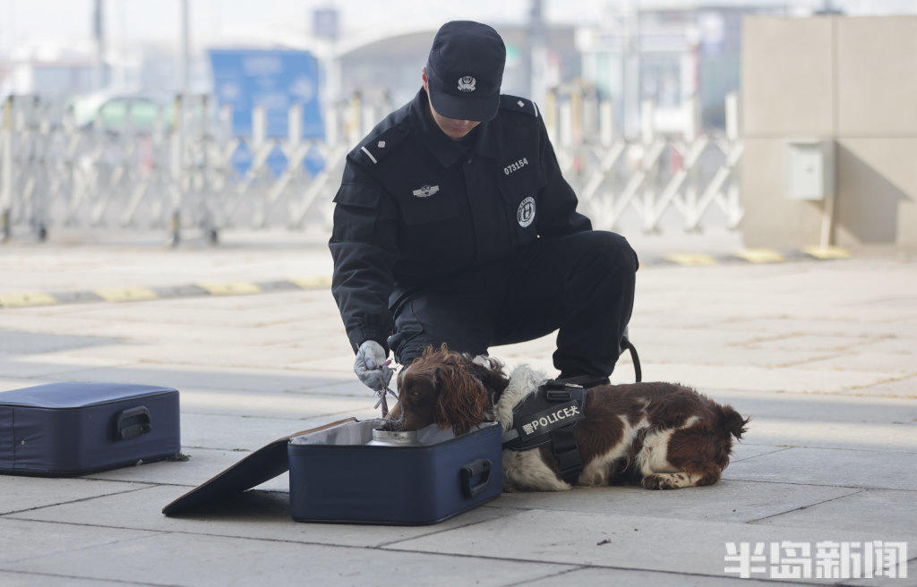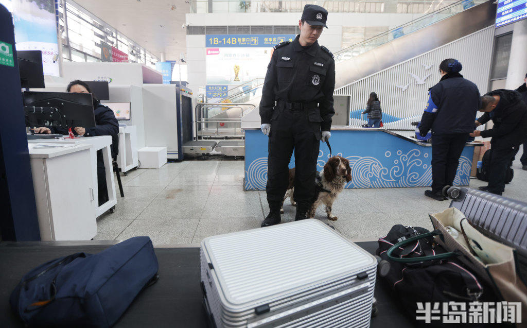 2月11日,青岛铁路公安处特警支队民警携搜爆犬,在青岛火车北站、青岛站开展巡逻防控与行李抽检工作。一旦发现行李中藏有易燃易爆等危险品,警犬便会立刻吠叫示警,民警随即开展进一步核查处置。