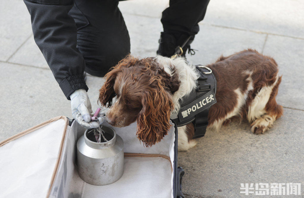 搜爆犬开展搜爆品演练。