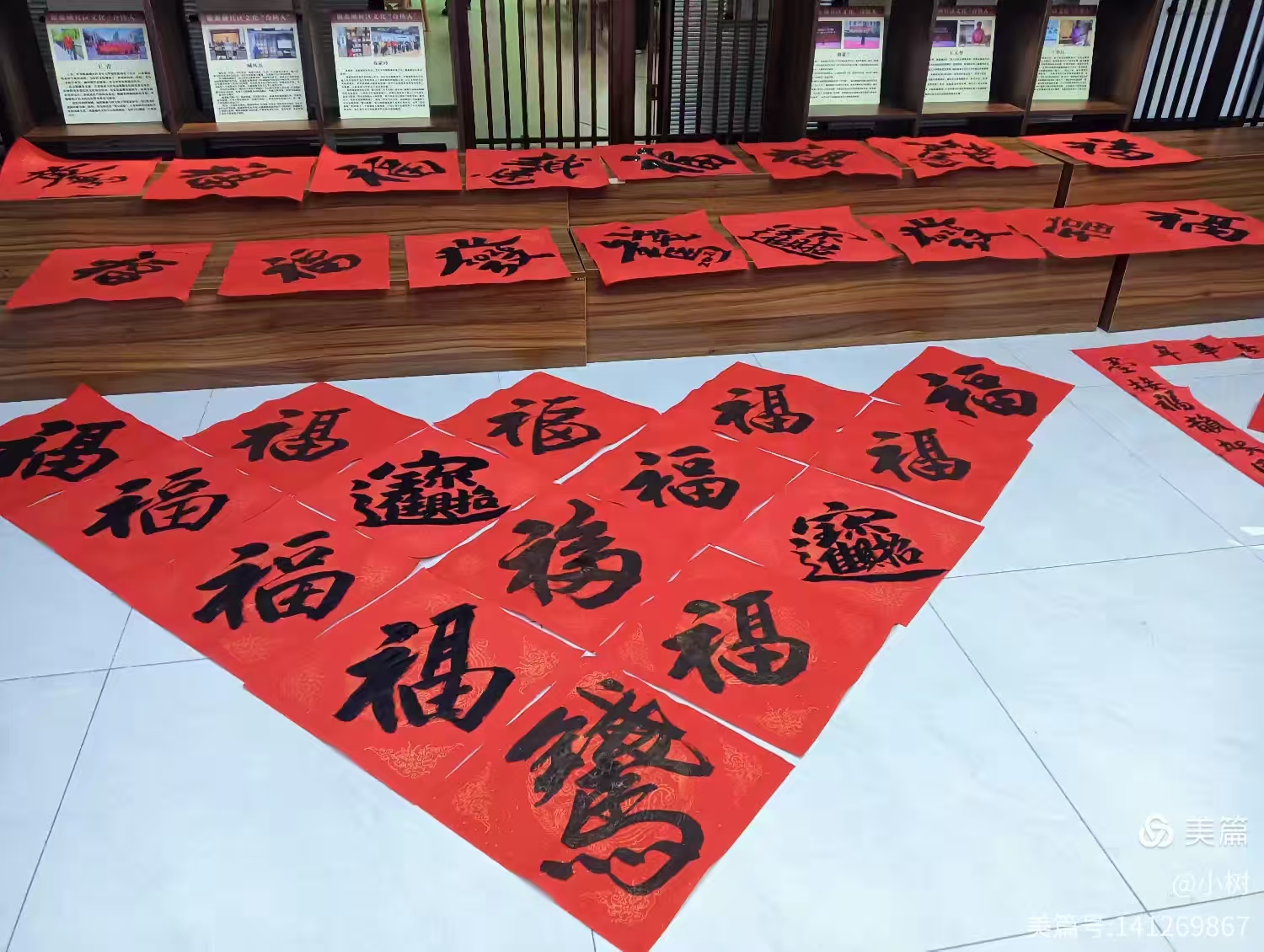 学员们每到一处,现场都特别热闹。大红的宣纸整整齐齐铺在桌上,笔墨砚台一一摆好,周围围满了来领春联、看书写的群众。学员们精神头十足,握起毛笔稳稳落笔,手腕轻轻一动,端庄工整的楷书、潇洒灵动的行书就跃然纸上,一幅幅吉祥的春联、一个个饱满的“福”字,很快就堆成了红色的小山。“福满家门万事兴,春临大地百花艳”“马驰新岁路,福满万家兴”,每一副都藏着对新年的美好期待,每一笔都透着学员们的用心,看着就让人心里欢喜。