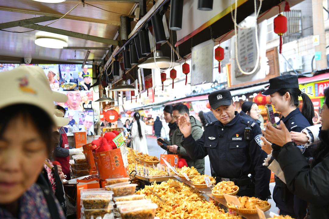 市场最火爆时,每天早晨六点,第一批商户开门时,民警已到岗;晚上十一点多,最后一批游客离去,警灯依然闪烁。张自强和同事们的作息与市场同步,他们的身影,成为市场红火最安心的注脚。