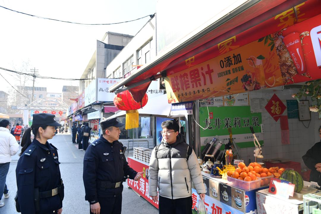 “锅饼哥,今天备货足啊!”上午8点30分,张自强沿着市场一纵两横的街巷,挨个店铺走着。得益酸奶、紫米饼、琉璃店……每家网红店铺他都熟悉。安全检查、提醒注意事项,与店主们如老友般说说笑笑间,工作已悄然完成。