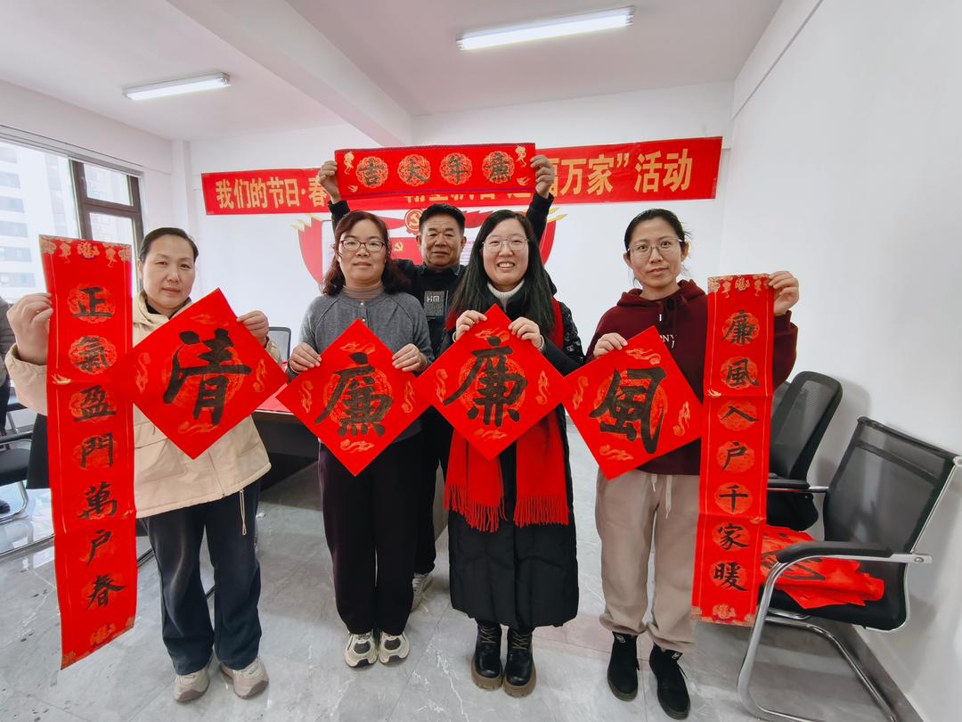 “廉风入户千家暖,正气盈门万户春”“德泽流芳润廉心,薪火承清树新风”……一副副春联在宣纸上跃然呈现,既蕴含着对新春佳节的美好期许,又浸透着廉洁文化的深厚底蕴,为新春增添了一份别样韵味。居民围在桌旁,专注欣赏书法老师的精湛技艺,精心挑选心仪的春联内容,不时发出由衷的赞叹:“这手写的春联就是不一样,既有传统的年味儿,又有清廉的‘廉味儿’,太有特色了!”孩子们也兴奋地展示晾干的“福”字,现场欢声笑语交织,营造出喜庆祥和的节日氛围。