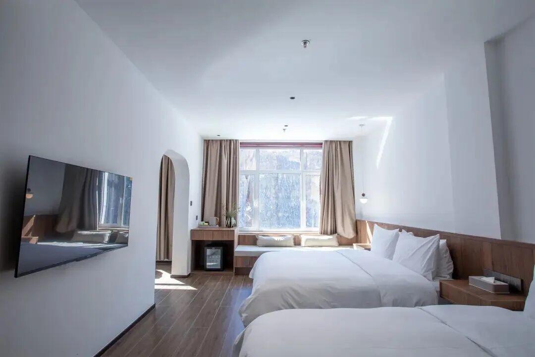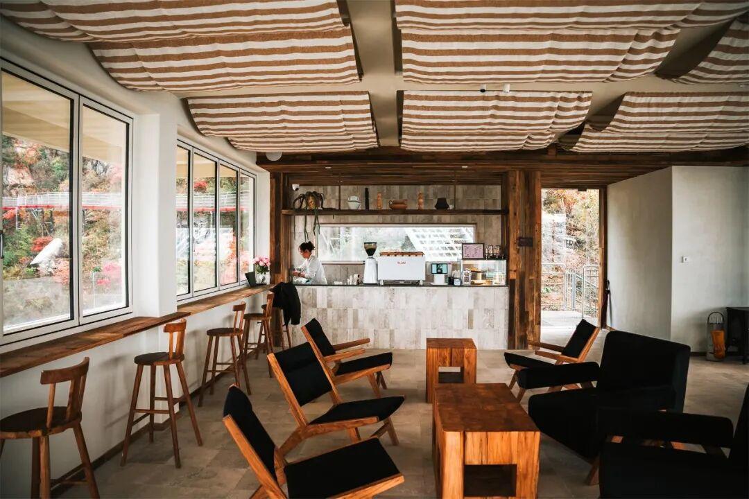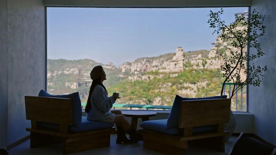 当漂流的刺激与秋千的狂野暂歇,不妨移步悬崖之巅的【雾·云麓】咖啡厅,一整面落地窗把山与云框成流动的画,原始岩壁就留在手边。