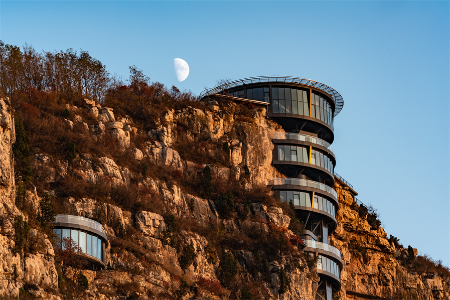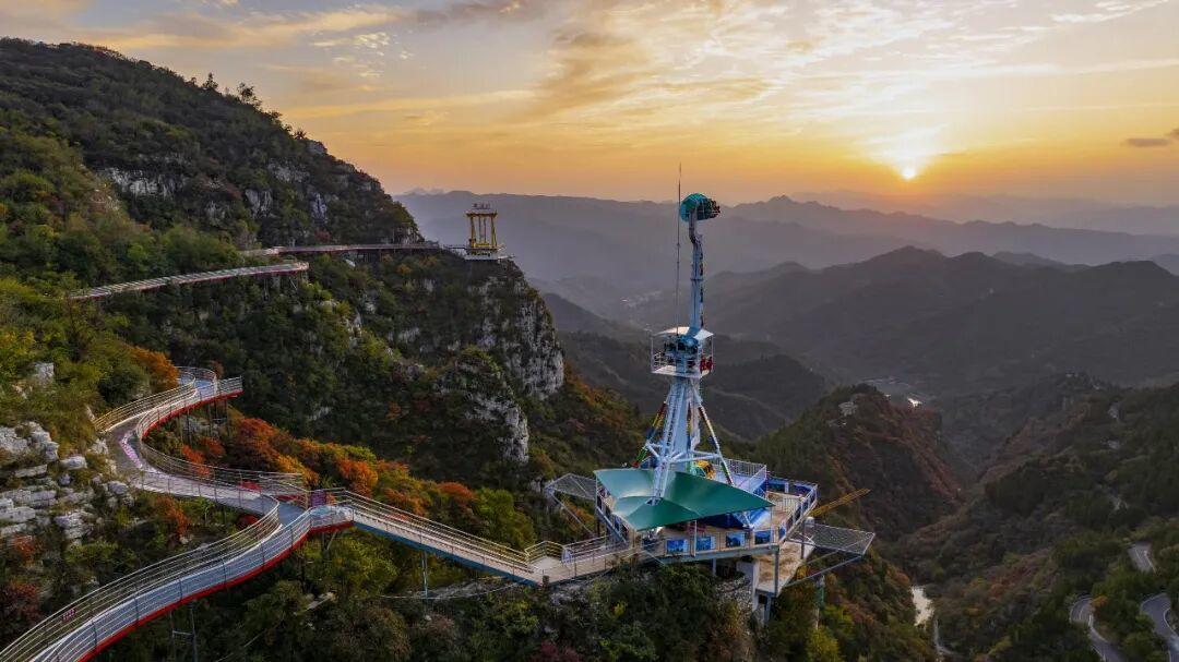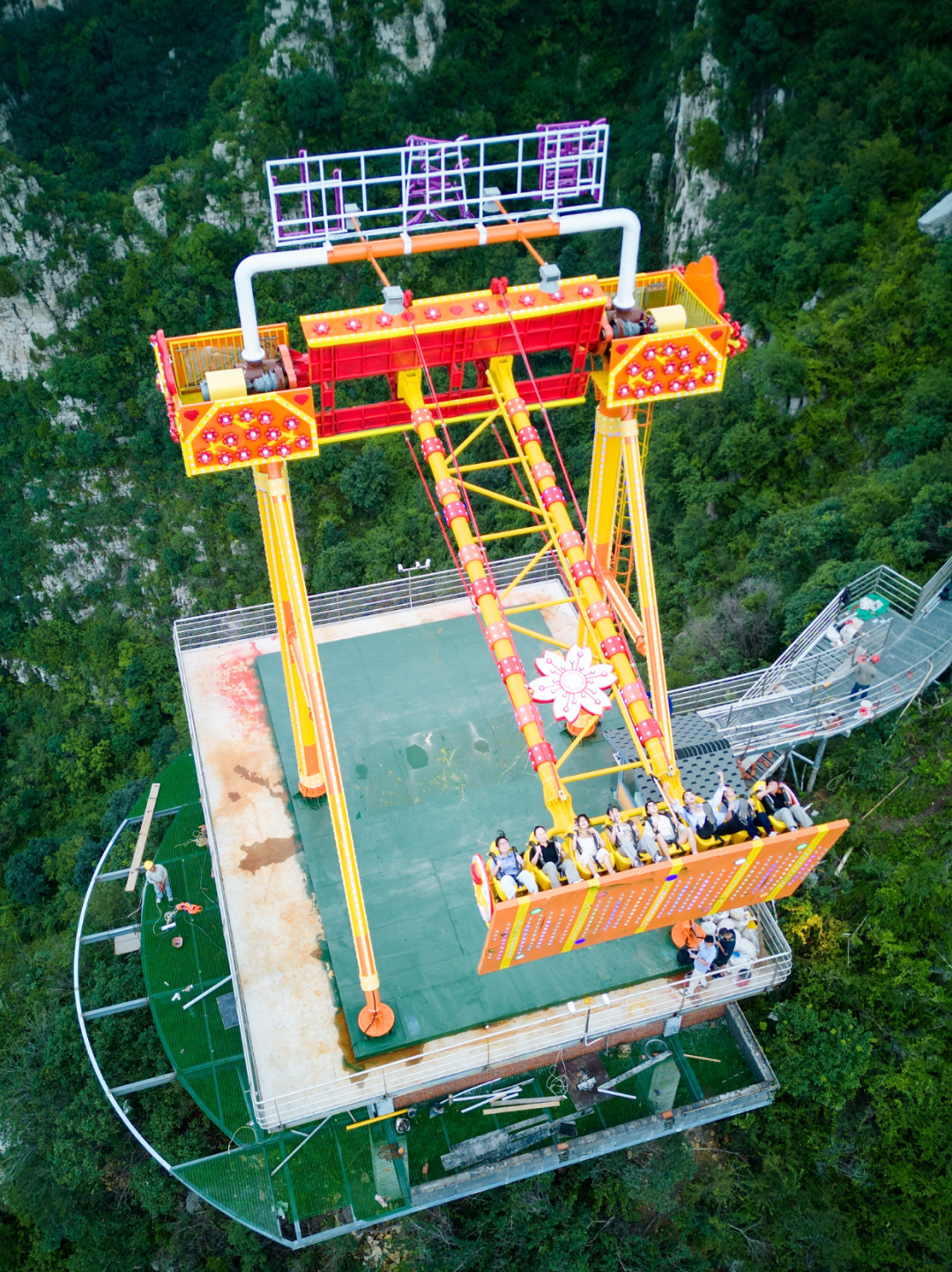 山东首个悬崖大秋千与山东海拔最高的悬崖狂呼隔山相望,在海拔740米高空,在失重与超重交替的快感中一起拥抱天际。