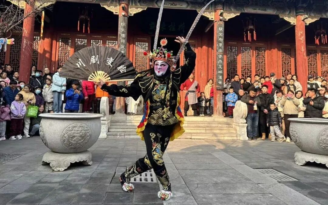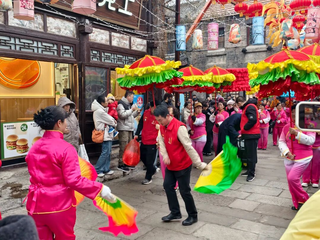 舞狮闹新春,还有更多民俗表演项目。惊喜的是——你可以随时加入,推起碾子、挑起货郎担,成为这场年味大戏的一部分。
