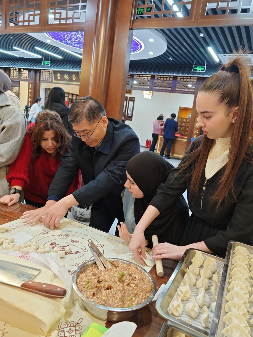 “我觉得这个活动特别棒!”来自摩洛哥的留学生苏含,一边笨拙却认真地捏着饺子褶子,一边兴奋地展示她的“作品”,“老师告诉我们,今天的馅料里专门加了养生食材,像陈皮、生姜、大葱,不仅味道独特,还有‘暖身养胃’的功效。这不仅是美味,更是健康!”