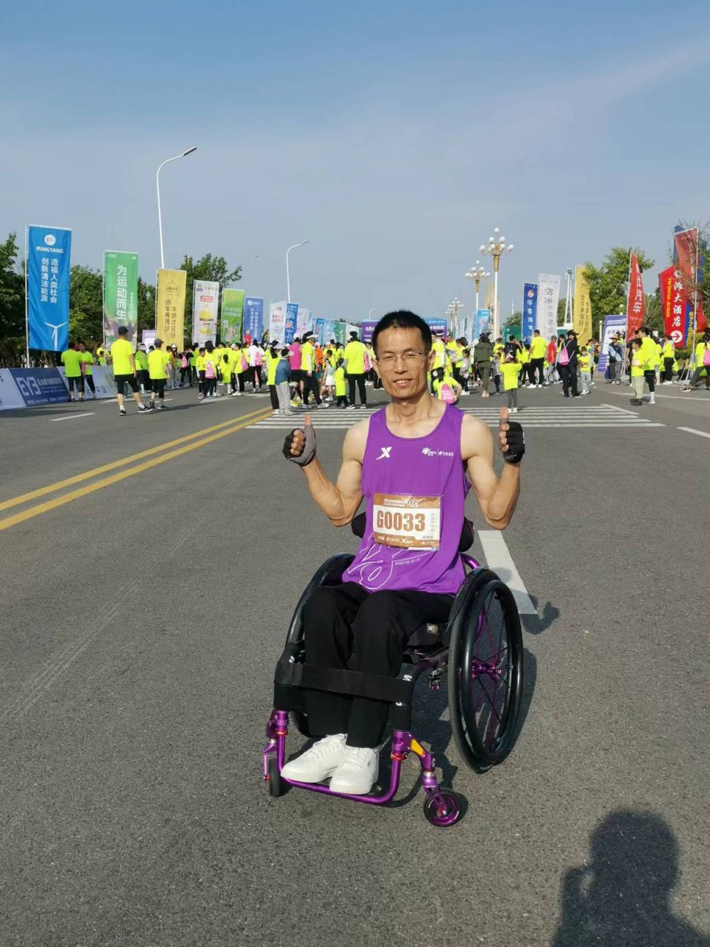在青岛体育圈,于文涛还有一个特殊的身份——轮椅马拉松赛事的组织者。2023年,青岛海上马拉松轮椅组比赛成功举办,这场赛事吸引了全国各地50多名轮椅选手参赛,背后的组织者正是于文涛。此前,青岛从未有过专门的轮椅马拉松赛事,于文涛深知,对于残障人士而言,体育不仅是锻炼身体的方式,更是融入社会、重拾自信的途径。于是,他主动牵头,对接赛事方、协调场地、组织选手、安排保障,一步步将这场赛事变成了现实。