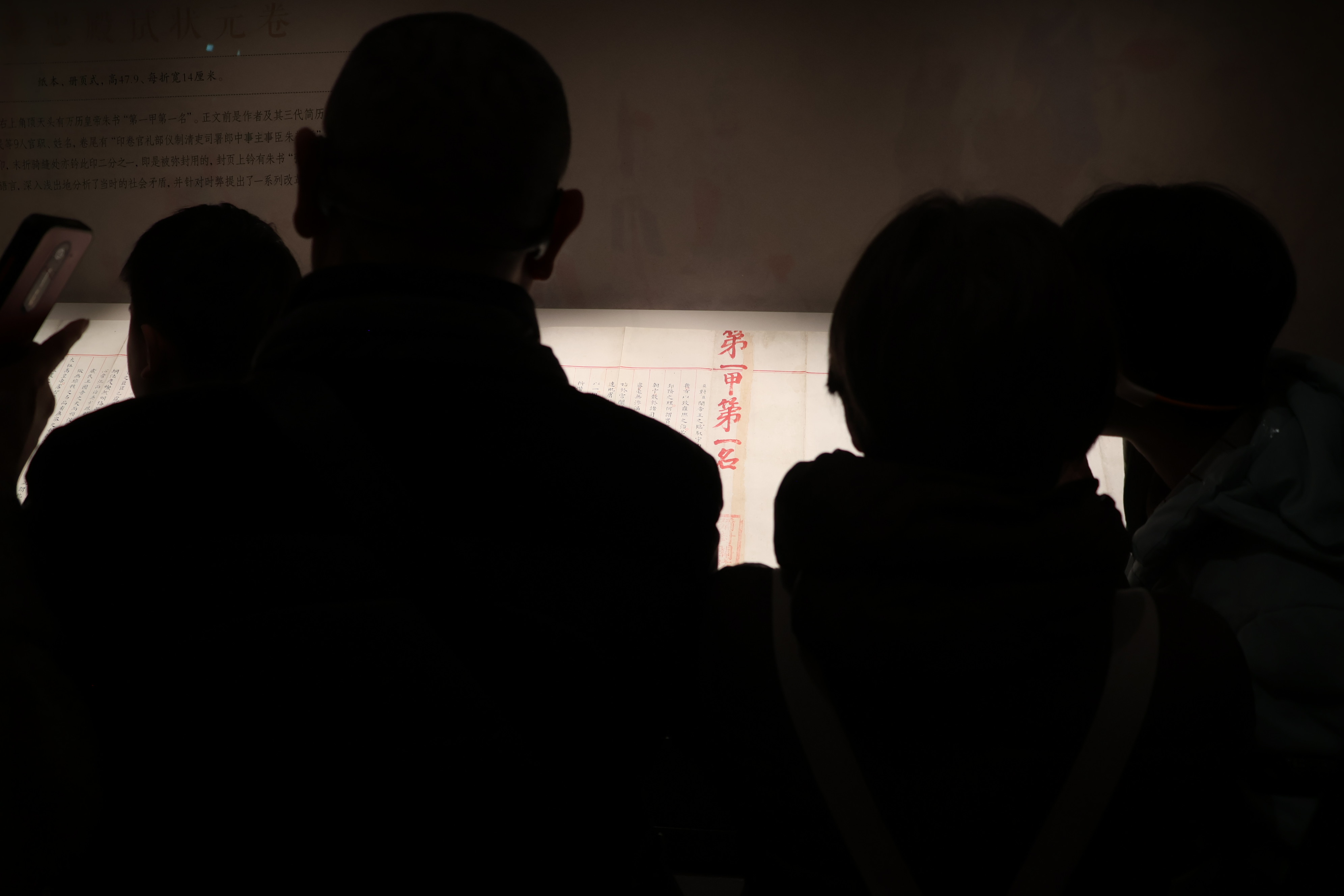 赵秉忠“第一甲第一名”状元卷展柜前摩肩接踵。都亚男摄