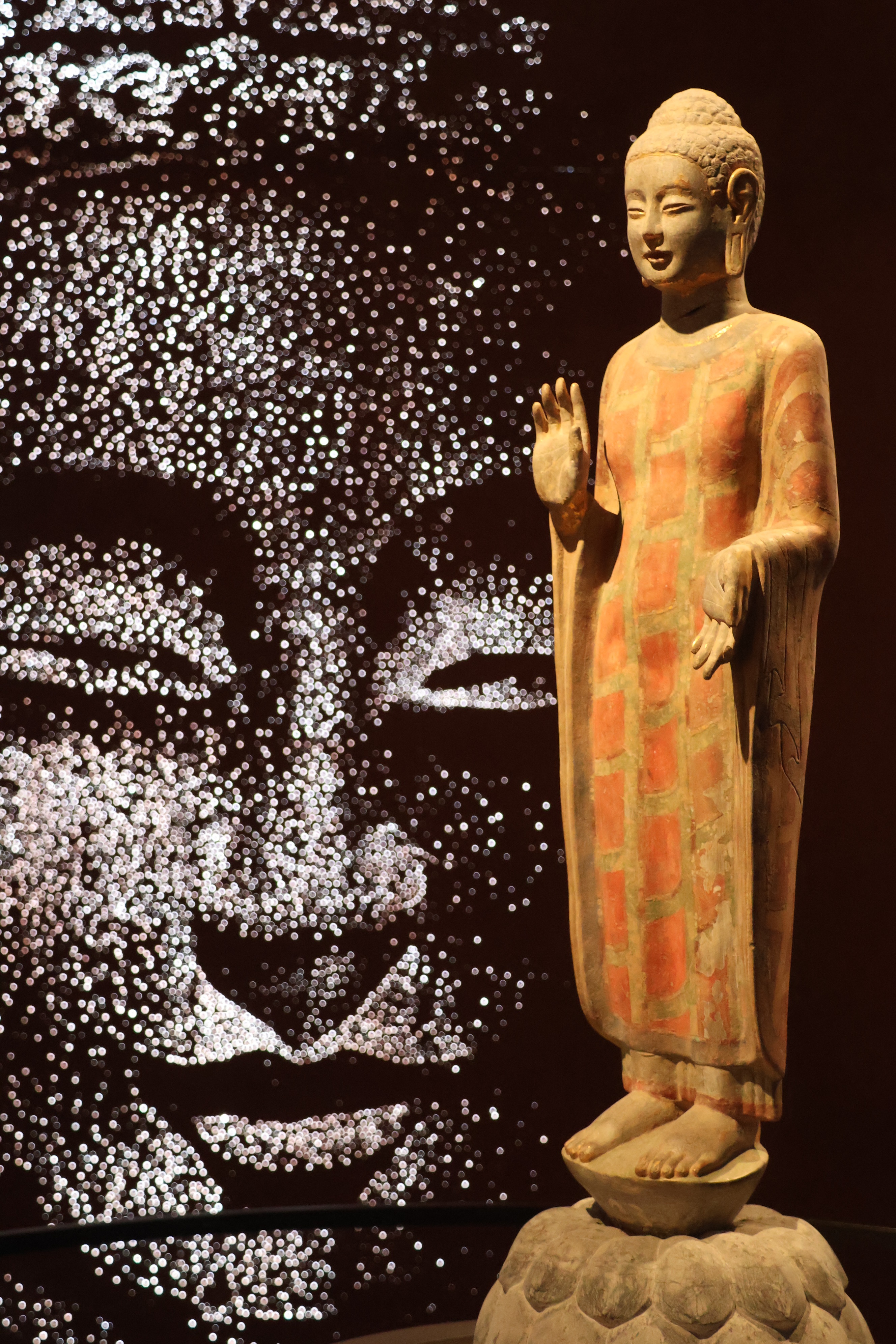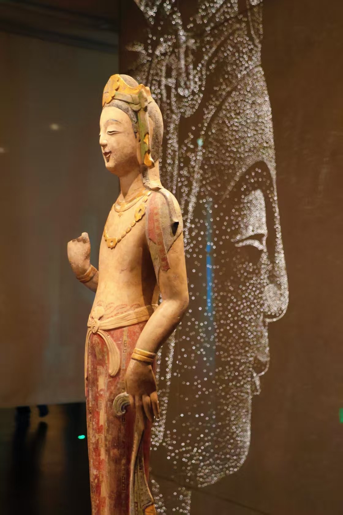 青州龙兴寺佛造像都带有笑意,这尊被摆在C位的贴金彩绘圆雕菩萨立像,成为不少游客“打卡”的必经之地。都亚男摄