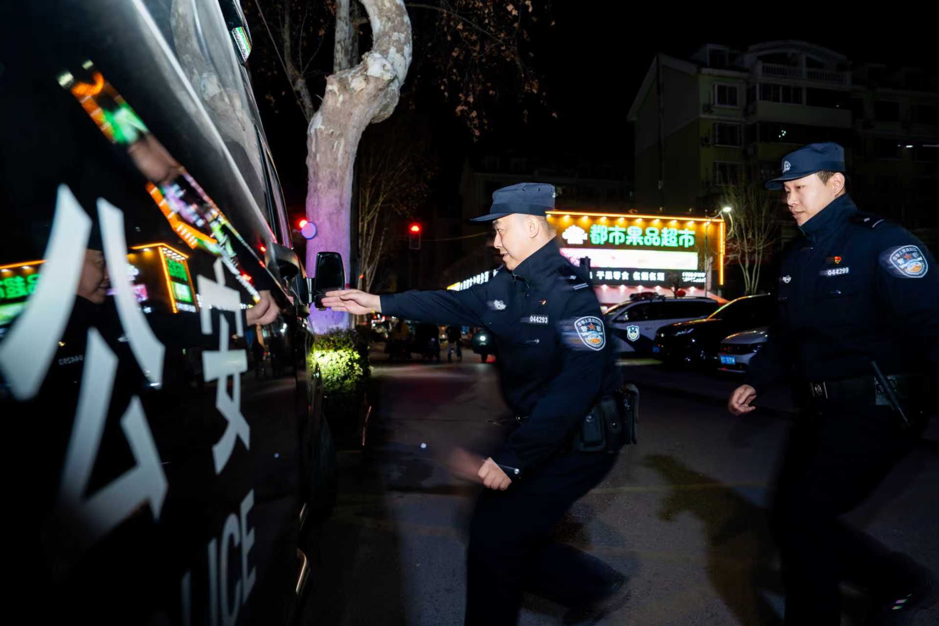 夜深人静,喧嚣渐退,“市中快警”巡逻车灯依旧在街头闪烁,藏蓝身影始终在路上……