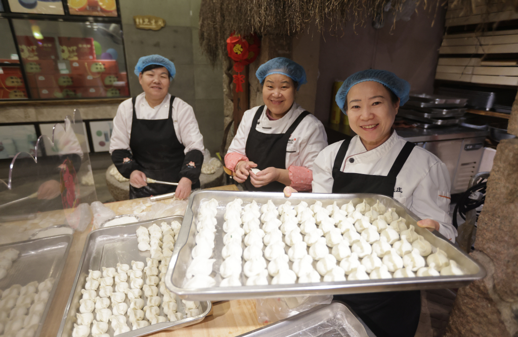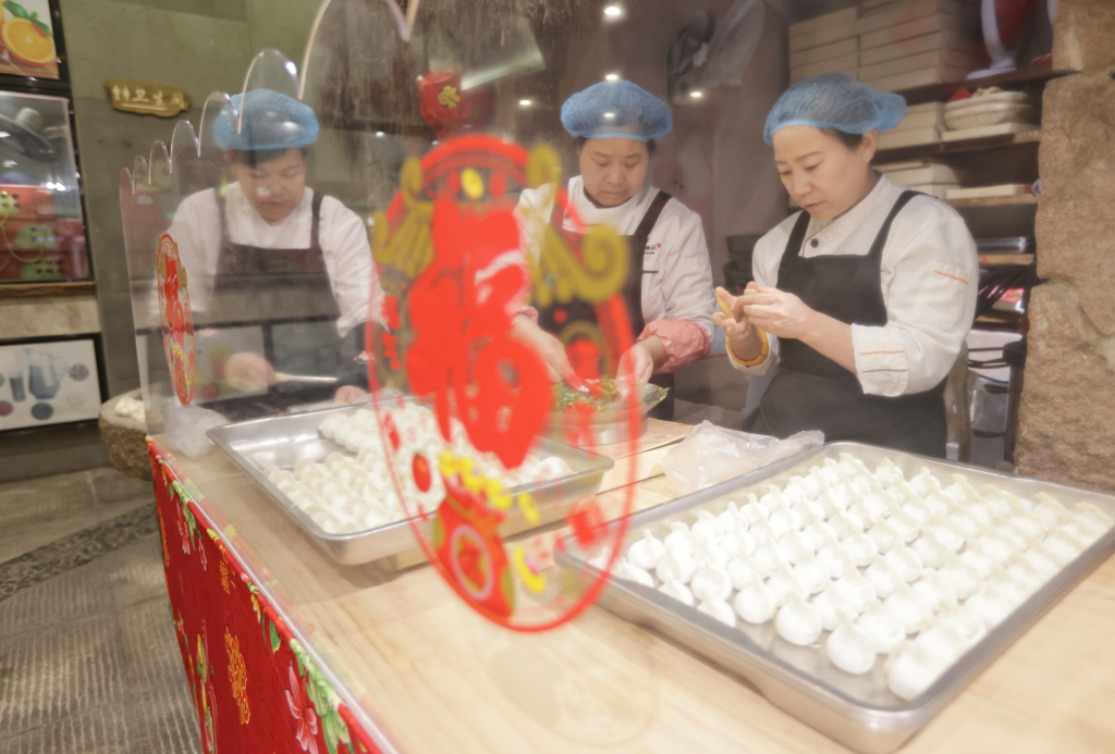 面点师傅在包年夜饭饺子