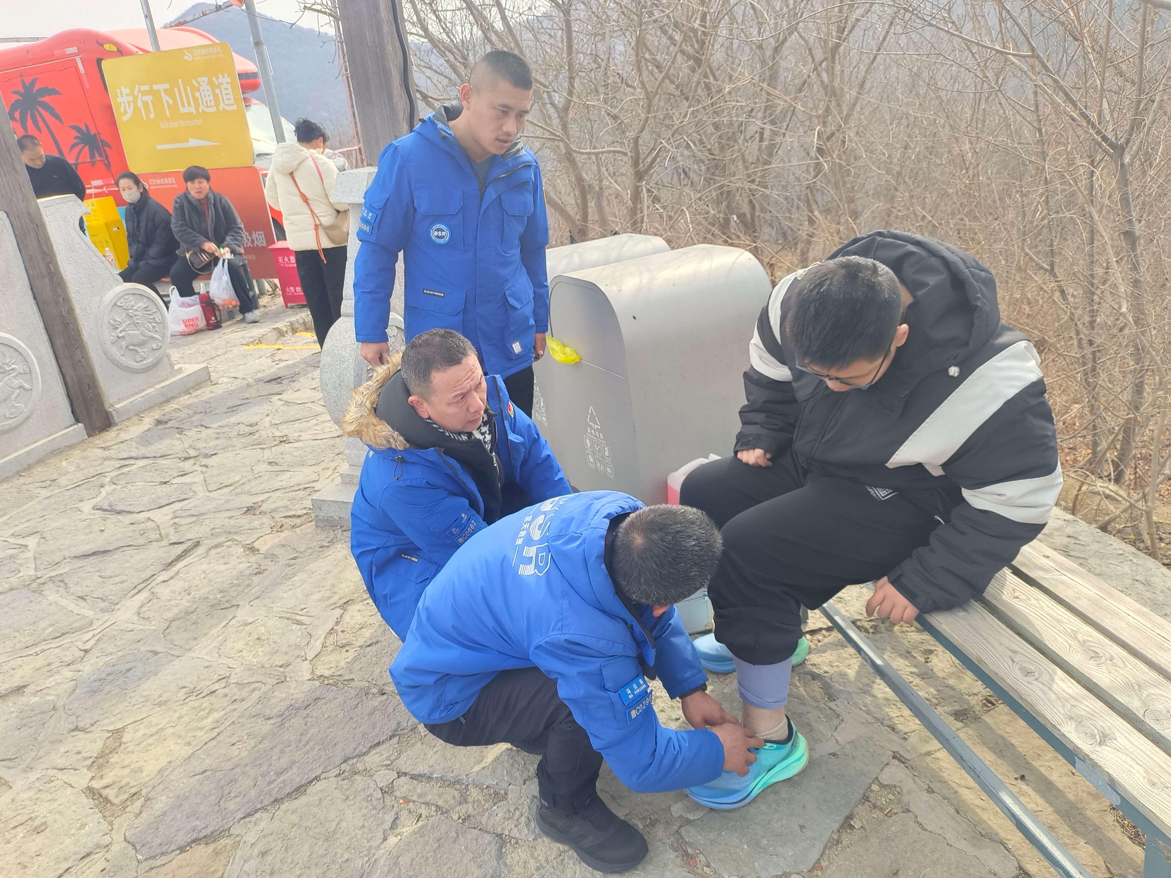 人群中,身着队服的蓝天救援队员格外醒目。他们或驻守在险要路段,或巡逻于人群之中,成为景区里一道特殊的“风景线”。游客李同学(化名)在登山途中不慎扭伤了脚,无法继续行走,救援队员们迅速上前,初步判断伤情后,用巡逻车把他送至景区门口,由家长送往医院治疗。他们以专业和坚守,为新春出行的游客送去了一份安心与温暖。