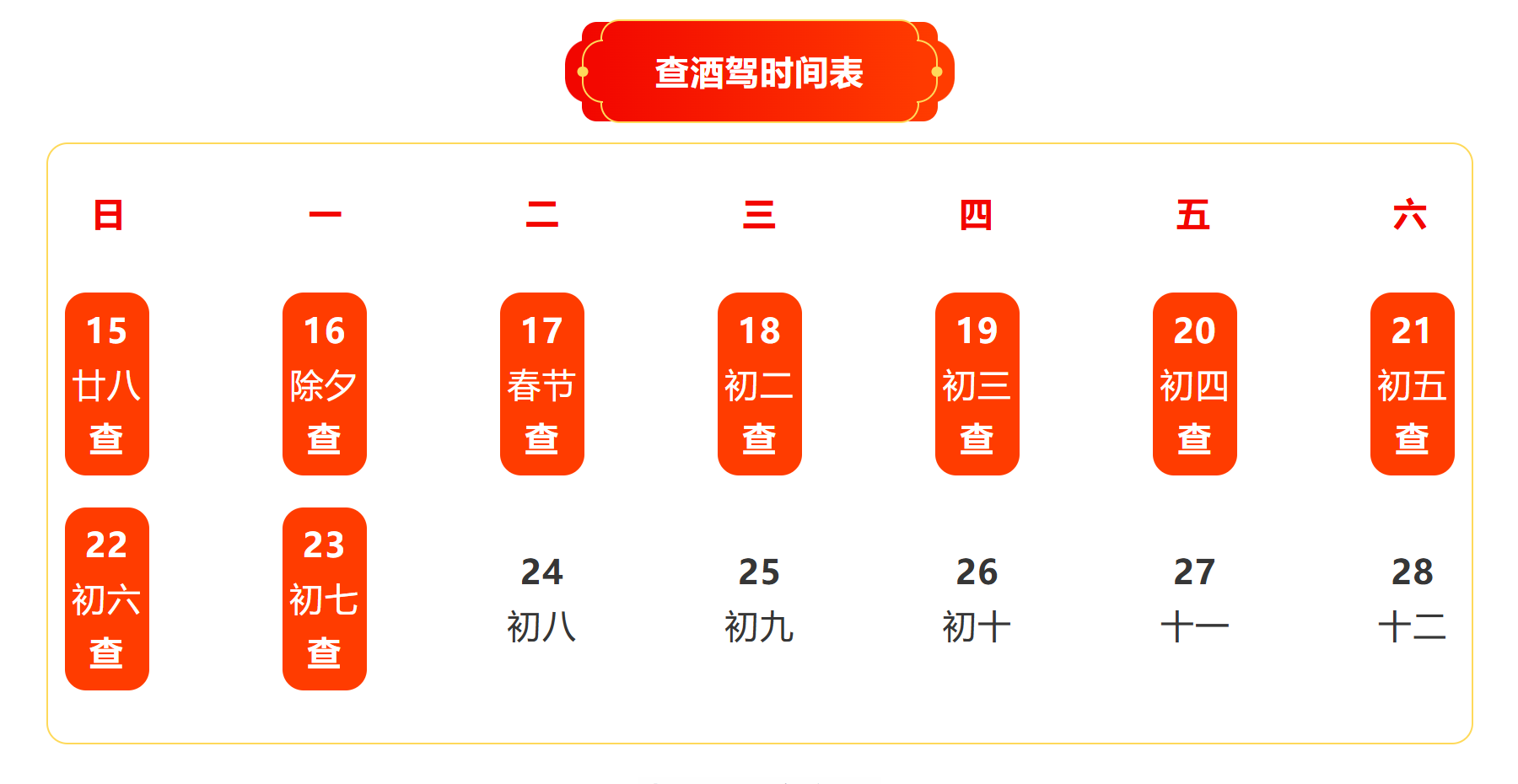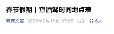 2月18日,泰安交警发布查酒驾时间表。