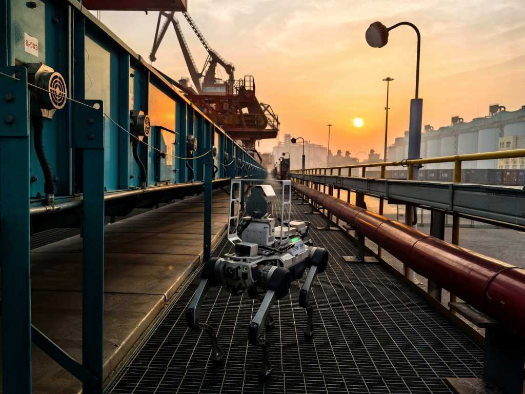 “过去,一次巡检要往返6公里,棉袄都能湿透。现在只需在系统中一键下发任务,机器人就能自主从充电房出发,完成筒仓下方风机、驱动电机的温声检测,再沿着专用斜坡爬至皮带机廊道,排查托辊等关键部位隐患,排查运行状态。”青岛港董分公司粮食队队长助理陈厚斌介绍道,这位“科技哨兵”故障预警准确率超过98%,整体巡检效率较传统人工方式提升3倍以上。