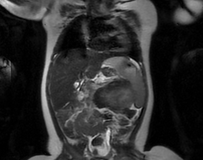 面对以“重度血小板减少、消耗性凝血病、腹部巨大包块”为特征的重症婴儿,诊断是首要挑战。在排除常见血液病及感染后,超声、核磁共振等影像学检查提示胰腺体尾部-脾门区占位。然而,儿童血液肿瘤科团队敏锐地抓住“婴儿期、急性病程、血小板减少伴消耗性凝血病”这一关键线索,高度怀疑患儿可能为罕见的“卡波西样血管内皮瘤合并卡梅现象”。