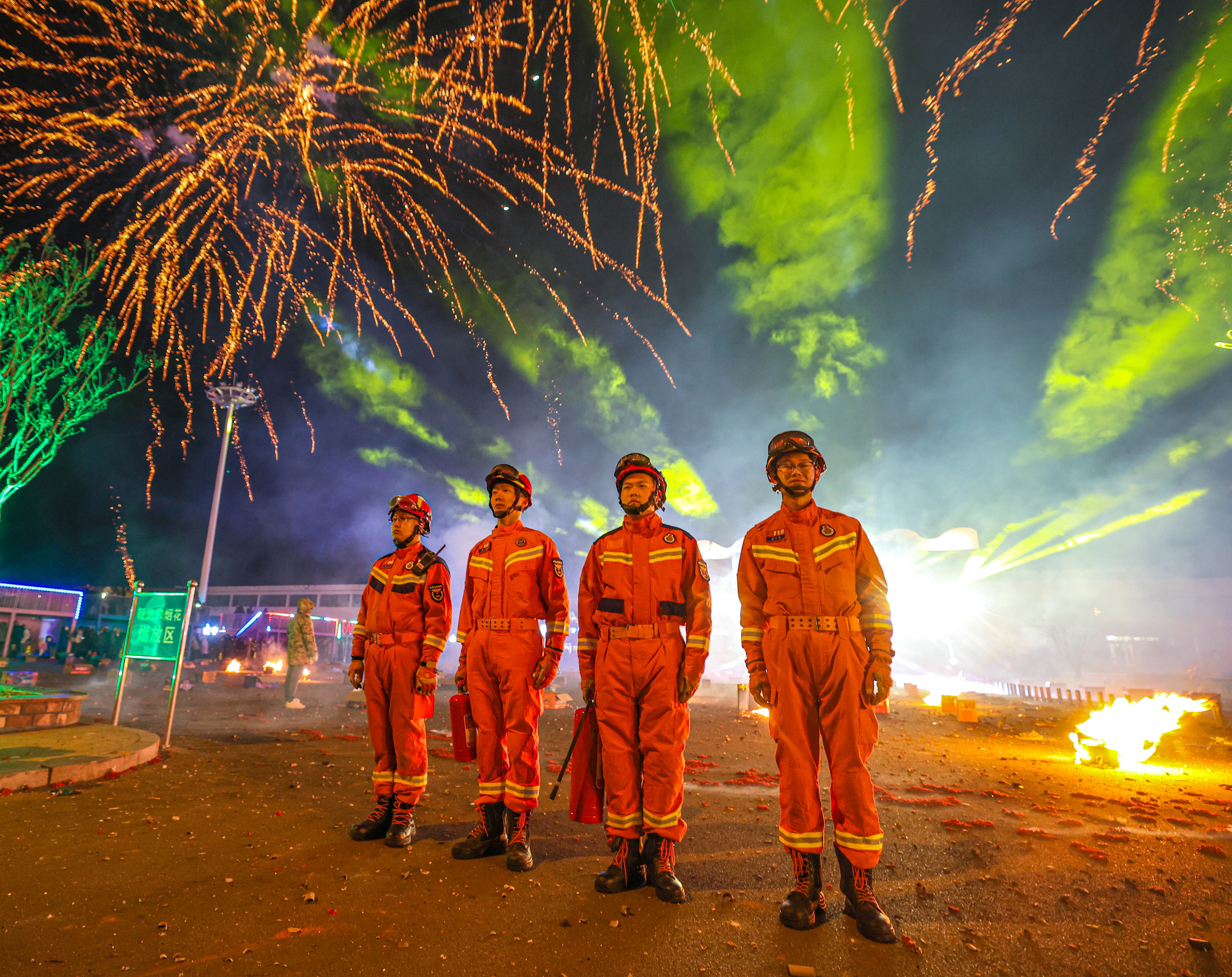 春节期间,荣成市寻山街道青鱼滩社区文化活动广场举办烟花秀,流光溢彩、年味浓郁。为确保活动安全有序,荣成市消防救援大队组织人员全程在岗值守,提前排查安全隐患,现场定点巡防、严阵以待,全力做好应急救援准备。璀璨烟花之下,“火焰橙”坚守一线,用忠诚与担当守护群众平安过节,成为新春佳节里一道温暖而坚实的防线。(李信君周琳珑)