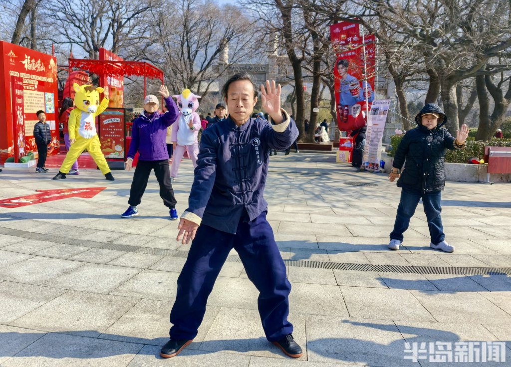2月19日,崂山太清广场武韵飞扬、年味浓郁,一场融合武术展演与互动体验的新春文化活动精彩上演,市民游客相聚山海之间,以武贺岁、共迎新春。