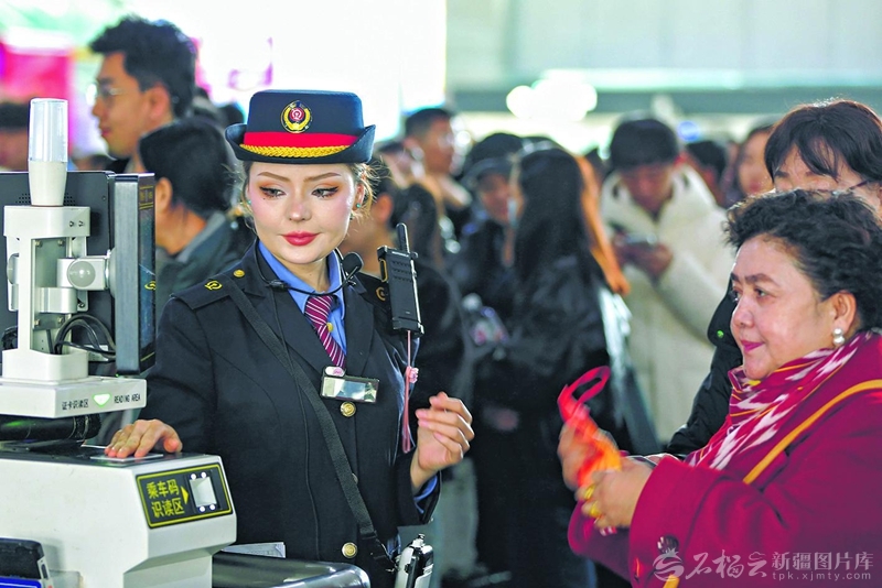 2月19日,哈密火车站候车室,客运员在引导旅客检票登车。天山网-新疆日报记者蔡增乐摄