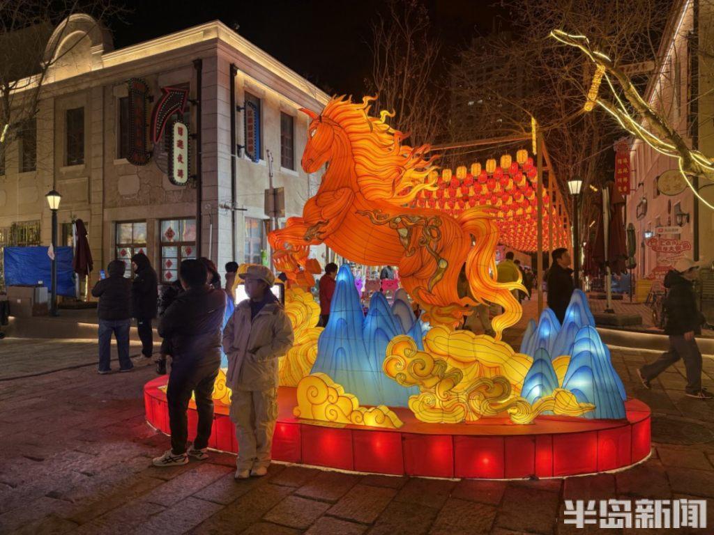 正月里的青岛,糖球甜香与花灯流光交织,作为“岛城新春第一节”,2026青岛萝卜·元宵·糖球会引进国家级非物质文化遗产——四川自贡非遗花灯,在大鲍岛文化休闲街区打造“千灯映鲍岛·流光不夜城”新春灯会。15组匠心灯组错落排布,焰魂哪吒、马踏祥光、马年趣饰廊、生肖萌巷、海境流光等主题灯组惊艳亮相,以精湛工艺融合马年生肖、国潮IP、海洋风情与民俗童趣,让百年节会焕新国潮光彩,吸引市民游客驻足打卡、沉醉光影。