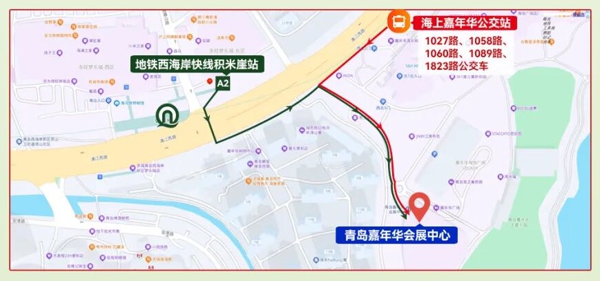 地铁:西海岸快线积米崖站下车,A2口出站,步行至马路对面往东至青岛嘉年华会展中心