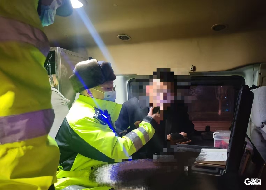 2月15日22时30分许,交管黄岛区大队民警在黄岛区长江中路与韶山路路口西侧开展酒醉驾违法行为查处行动时,一辆小型客车驶入检查点,民警随即对驾驶人进行呼气式酒精测试,结果为128mg/100ml,涉嫌醉酒驾驶机动车。随后,民警将驾驶人带至医院提取血样检验,目前,该案件正在进一步调查处理当中。