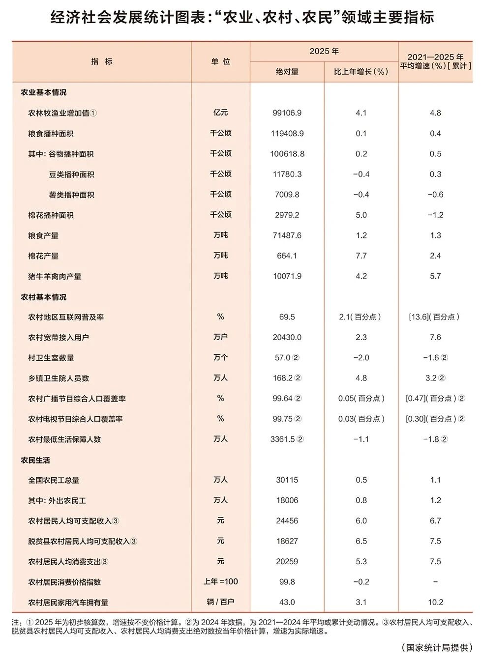 经济社会发展统计图标:“农业、农村、农民”领域主要指标