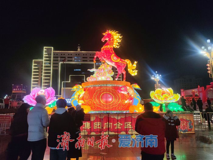 近日,在济南市莱芜区中心广场“华灯映福马到成功”主题灯展灯光璀璨,氛围感拉满。各式马年主题花灯造型精巧、寓意吉祥,灯光璀璨间尽显新春暖意,将园区装扮得流光溢彩。市民漫步灯海,赏灯影流转,在璀璨光影中逛非遗好品大集,感受浓浓的年味儿。