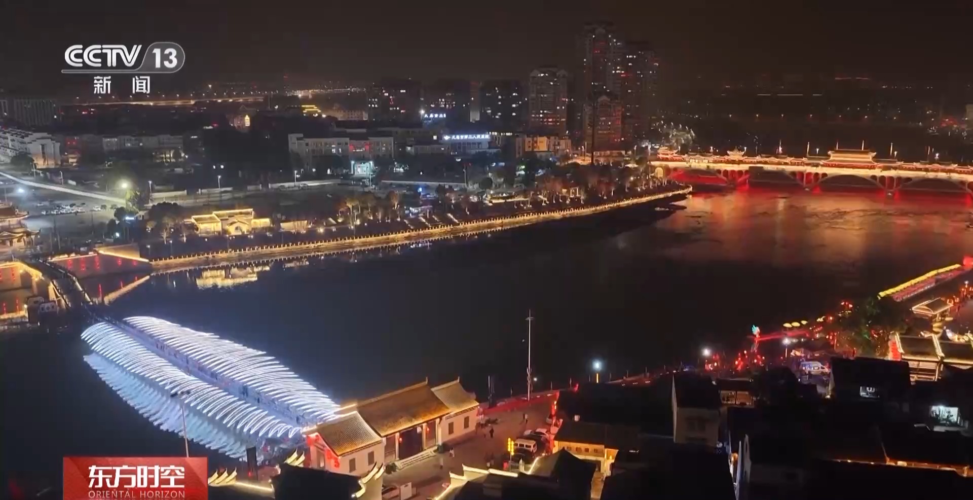 在春晚上亮相的罍街也吸引了众多食客纷至沓来,200多家美食档口、8大非遗工坊将传统文化与烟火气深度融合。骆岗公园主舞台与三河古镇的数千盏鱼灯交相辉映,吸引不少游客到来。
