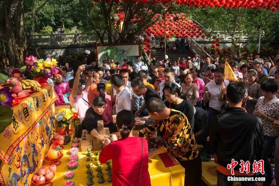 图为游客在海南祭拜财神。 洪坚鹏 摄
