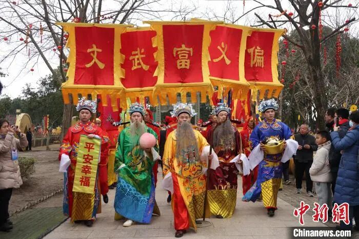 图为五路财神巡游周庄古镇。中新社记者 泱波 摄