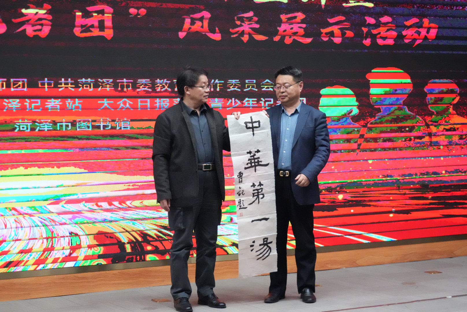 为深入宣传宣讲党的二十届四中全会精神,进一步加强青少年宣传宣讲工作,2月13日,菏泽市“少年讲·中国强”青少年宣讲暨“大众日报青少年记者团”风采展示活动在菏泽市图书馆举行。活动围绕“产业发展看家乡”等主题,以青少年特有的视角和语言,生动讲述了菏泽高质量发展的精彩故事。其中,省政协委员、省书协副主席曹钰为家乡产业倾情题字,与单县一中学生潘麒羽的深情宣讲交相辉映,共同奏响了“一碗汤赋能一座城”的产业强音。