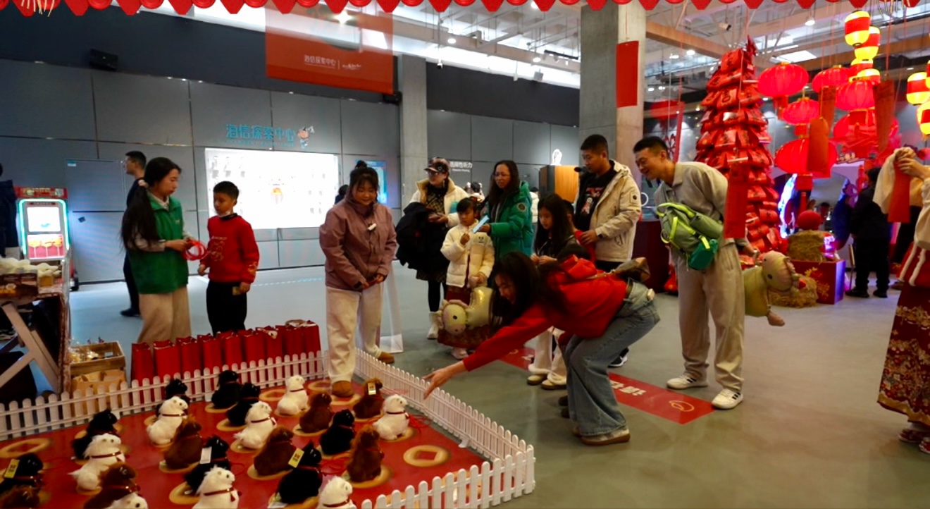萌宠互动区也迎来了新成员牛蛇,身披鳞甲的牛蛇看似“高冷”,实则性格温顺,还能近距离亲密互动。饲养员化身科普达人,为游客爆料动物们的趣味日常,让大家在互动中收获自然知识。身着红袍、手持金元宝的财神NPC更是场馆内的移动福点,走到哪里就把福气与“金”喜送到哪,路过的游客都沾了满满新年喜气。此外,场馆还推出免费公益讲解,深挖展品和年俗的趣味故事,古代智慧碰撞现代科技,让大家实现“参观一次,收获一筐”。