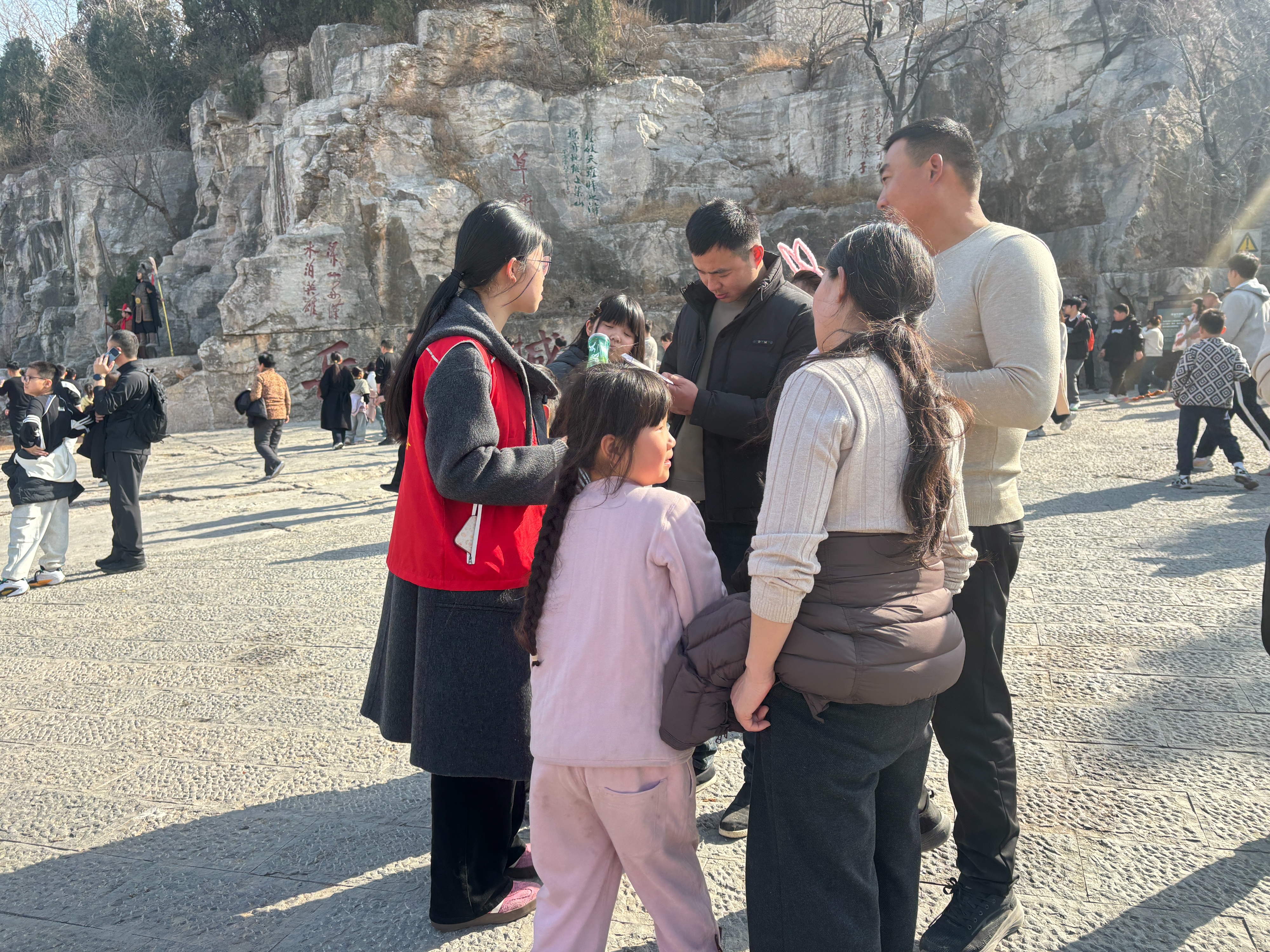 在游客中心、检票口、登山要道、核心景点等12个关键服务点位,百余名青年志愿者靠前服务,免费供应热水、应急药品、手机充电等暖心物资,提供线路引导、票务咨询、扶老助弱、文明劝导等便民服务,以细致周到的服务陪伴游客全程登山游览。