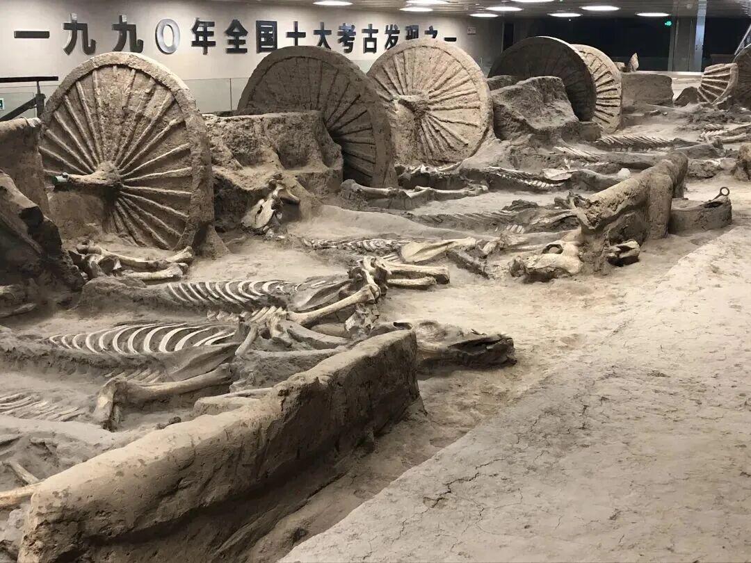 漫步馆内,从商代曲衡车的古朴形制,到西周马车的工艺革新,再到秦代铜车马复制品的精美繁复,历代古车的演进脉络清晰铺展。步入地下展厅,38匹殉马的骨架昂首伫立,姿态昂扬如初,仿佛仍在践行着千年前的征战使命。