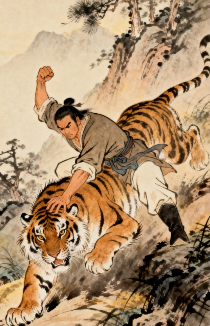 景阳冈在阳谷县城东,沙丘起伏,林木蓊郁。“三碗不过冈”的酒店招旗还在,酒碗比成年男子的拳头还大。武松当年喝了十八碗,不是酒量大,是胆量大。