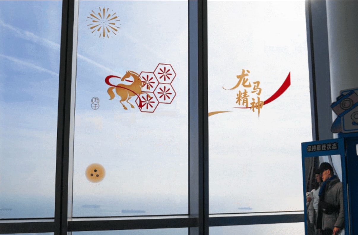 走进云上海天,浓浓的年味扑面而来。围绕“天马行空·云瞰中国年”的主题,精心策划了一系列互动性极强的文化活动。在81F的城市观光厅,一个大型的“走马灯祈福”装置成为全场焦点。游客们在此抽取福卡、写下心愿,转动巨大的走马灯,寓意“马携吉兆,福随轮转”,为新年许下美好开端。来自市南区的属马游客李先生兴奋地表示:“没想到属马还能有这样的福利,带着家人上来转转,既能看风景又能讨个好彩头,非常有意义。”