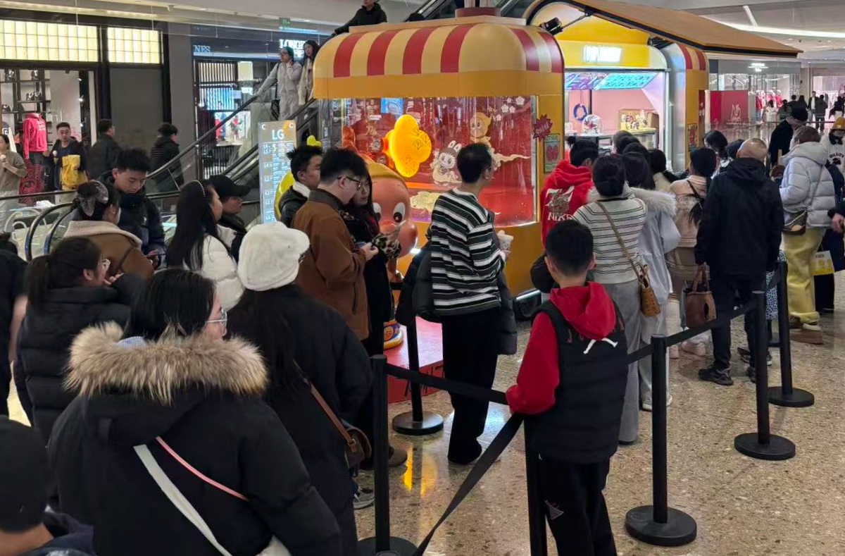 快闪店工作人员介绍,春节期间客流量远超预期,多款限定口味下午便售罄补货。“许多家庭和年轻人都是被IP吸引而来,顺便在商场内用餐、购物,形成联动消费。”