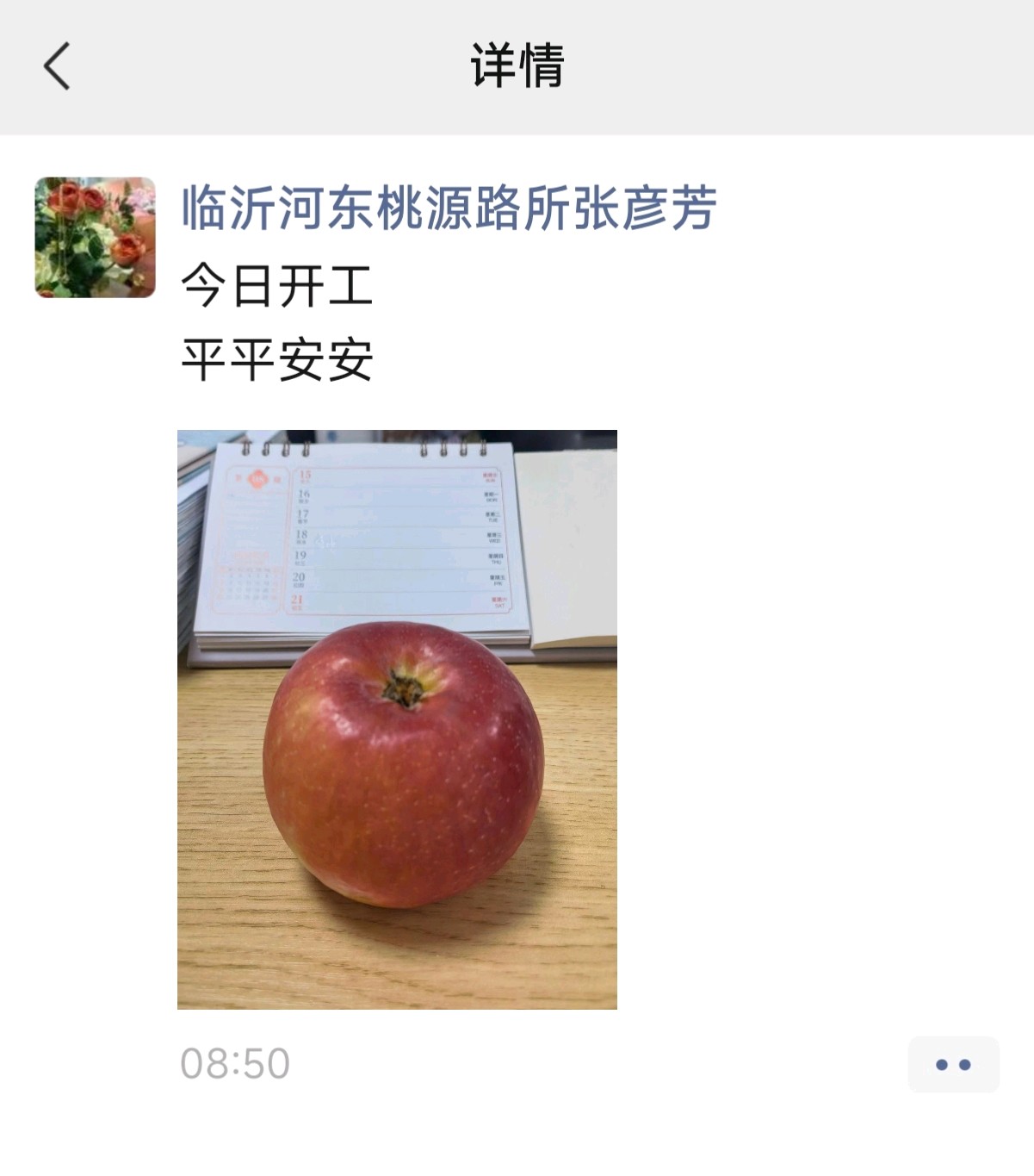 张彦芳在朋友圈里写道:“今日开工,平平安安”