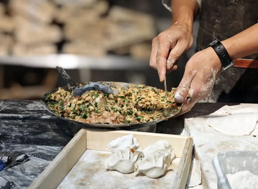 推荐“营养饺”馅料:黄瓜虾仁馅、猪肉海米韭菜馅、牛肉胡萝卜馅、猪肉白菜馅、香菜羊肉馅等。调馅时还可适量添加橄榄油、山茶油等优质植物油,既提升馅料润度,又有助于增加优质脂肪的摄入,让营养更均衡。