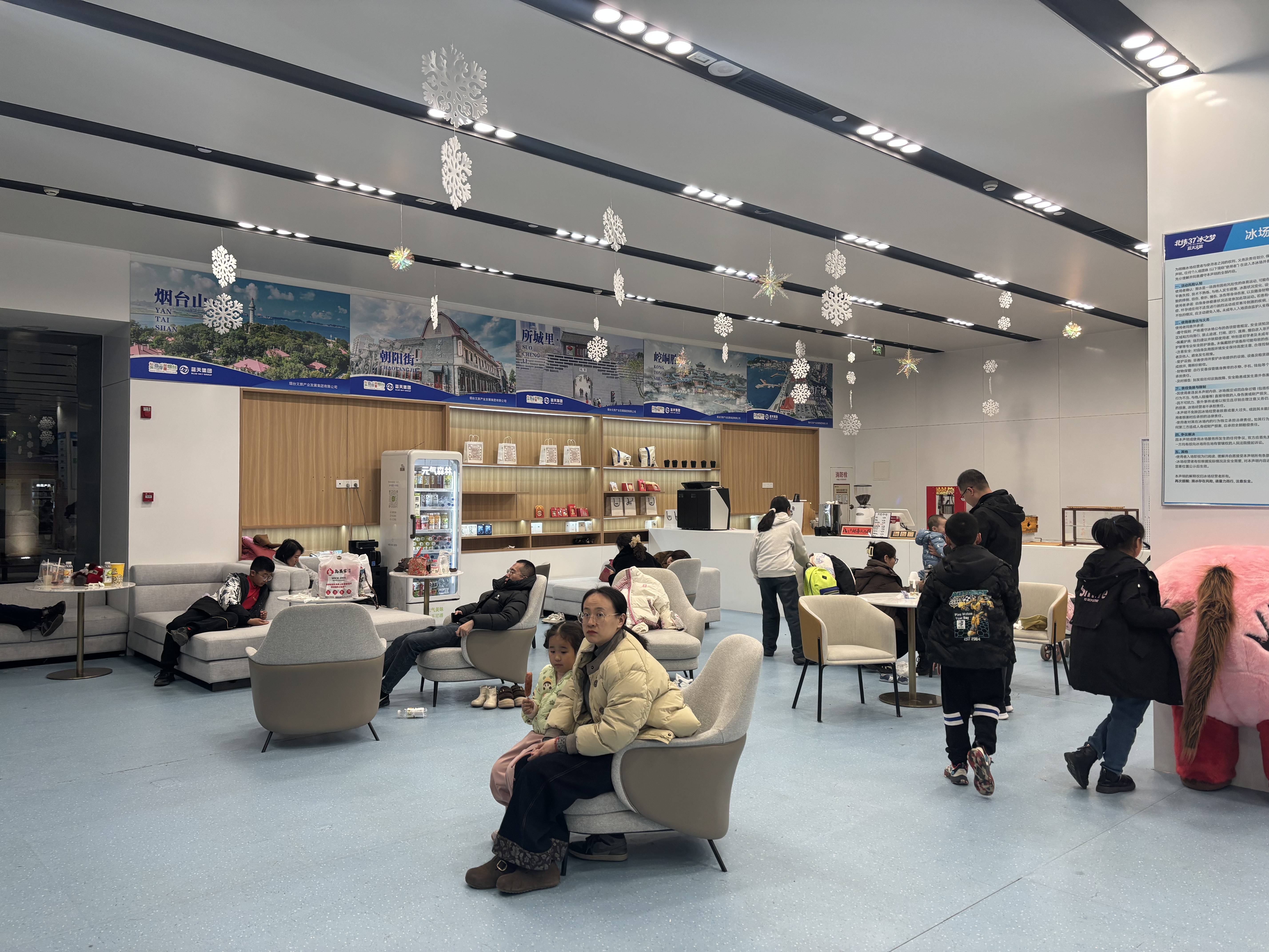 除了滑冰的乐趣,现场的服务保障也让市民感到贴心。记者看到,服务大厅内暖意融融,不少滑累了的游客正坐在沙发上喝热饮、吃小吃,透过全景玻璃窗欣赏冰场上的跃动身影,体验“冰火两重天”的惬意。工作人员介绍,春节期间冰场正常开放,为市民提供了一个在家门口就能享受的冬日休闲好去处。