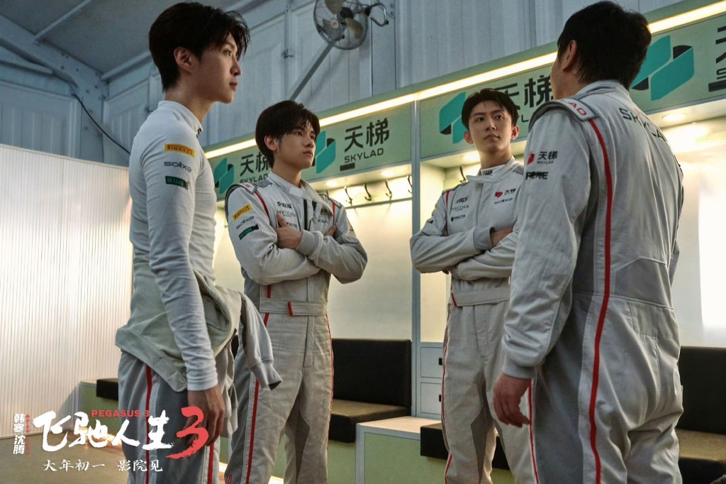 赛车电影的核心在于极致的速度感与多变的自然环境。在《飞驰人生3》中,沈腾饰演的张驰有一段至关重要的“雨中换胎”戏份,连绵曲折的赛道与雨雾交织的恶劣环境,构成了影片跌宕起伏的视觉高潮。