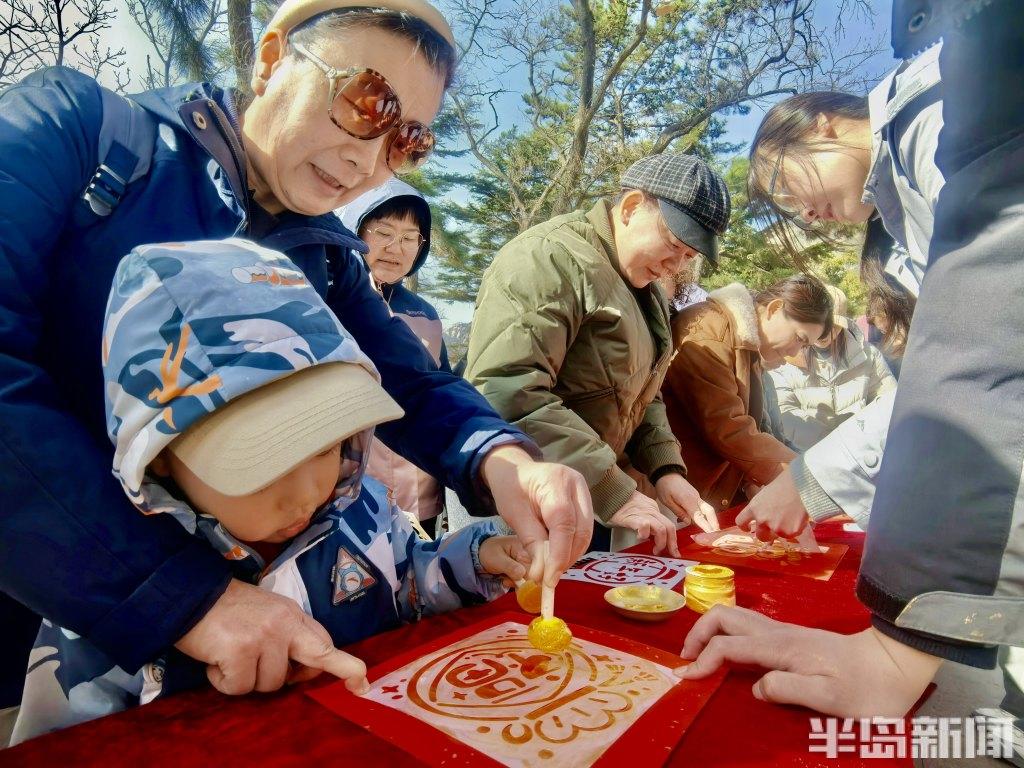 2月21日,崂山太清游览区新春氛围浓郁,一场以非遗拓印、山海祈福为主题的文化互动活动温情上演,吸引众多游客驻足参与。大家在青山碧海间,以指尖墨香解锁传统年味,用非遗手作定格新春美好。