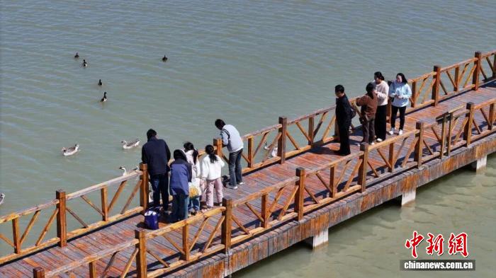 春节期间,游客在东营黄河口生态旅游区观鸟赏景。(黄河口生态旅游区 供图)