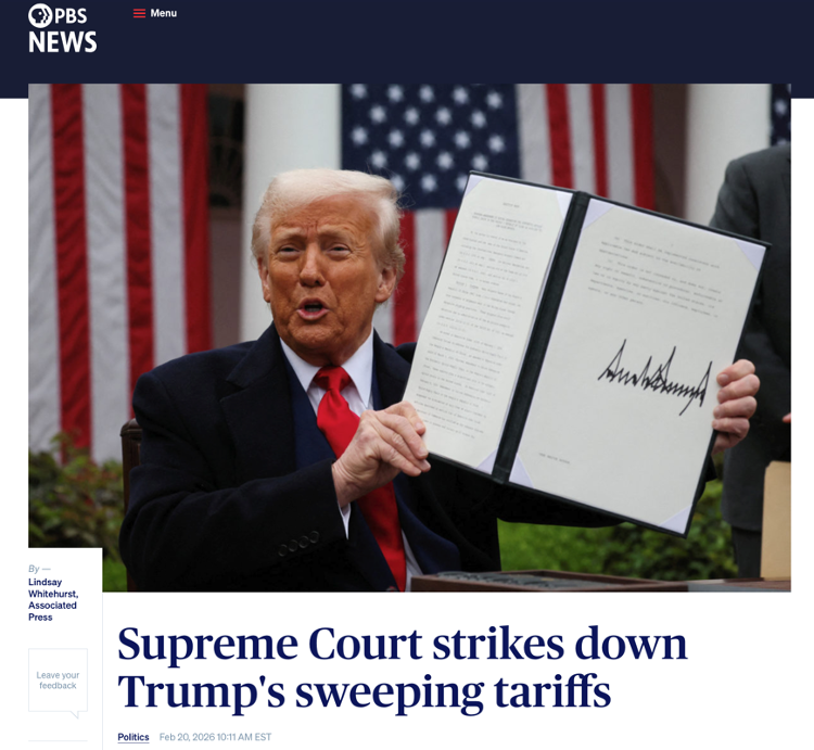 在美国国内,特朗普政府一直用“关税政策”来包装自己的经济路线,宣称“别国要想卖东西到美国,就必须付出代价”,把关税说成既是谈判大棒,也是增加财政收入、保护就业的万能工具。依靠IEEPA,美国在过去一年尝试推动的,是一种几乎覆盖所有贸易伙伴的“全球关税架构”,目标是“全面重写美国对外贸易规则”。但是现在,最高法院明确表示:这条路行不通,至少不能靠“紧急状态”这条捷径。相应地,这给特朗普政府的经济议程带来了不小冲击。