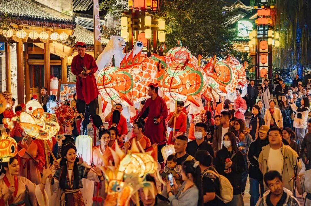 沉浸式体验已从视觉呈现升级为深度叙事与角色代入,成为市场主流。济宁尼山圣境与鲁源村的“回村过年”活动,游客可身着汉服参与祭孔、体验六艺,在大型实景演艺中与NPC共同演绎故事。临沂沂蒙彩虹小镇、竹泉村将日间巡游升级为大型实景剧本杀,夜间打铁花表演融入剧情线索,使体验升华为精神共鸣。枣庄台儿庄古城、泰安大宋不夜城等地,NPC互动贯穿全程,游客可与“李白”对饮、与“宋潮”角色合影,并通过互动任务赚取虚拟消费货币,实现了从“打卡”到“入戏”的转变。济南融创海世界推出的全国首个宋词沉浸式水下剧场《蝶恋花》,创造了全新的艺术体验形式。济宁麷街的“铁道激光秀”与《将进酒》舞台秀、德州齐河欧乐堡的无人机星空秀、济南全域灯会圈、烟台植物园灯会等,共同构建了虚实结合的沉浸式环境。